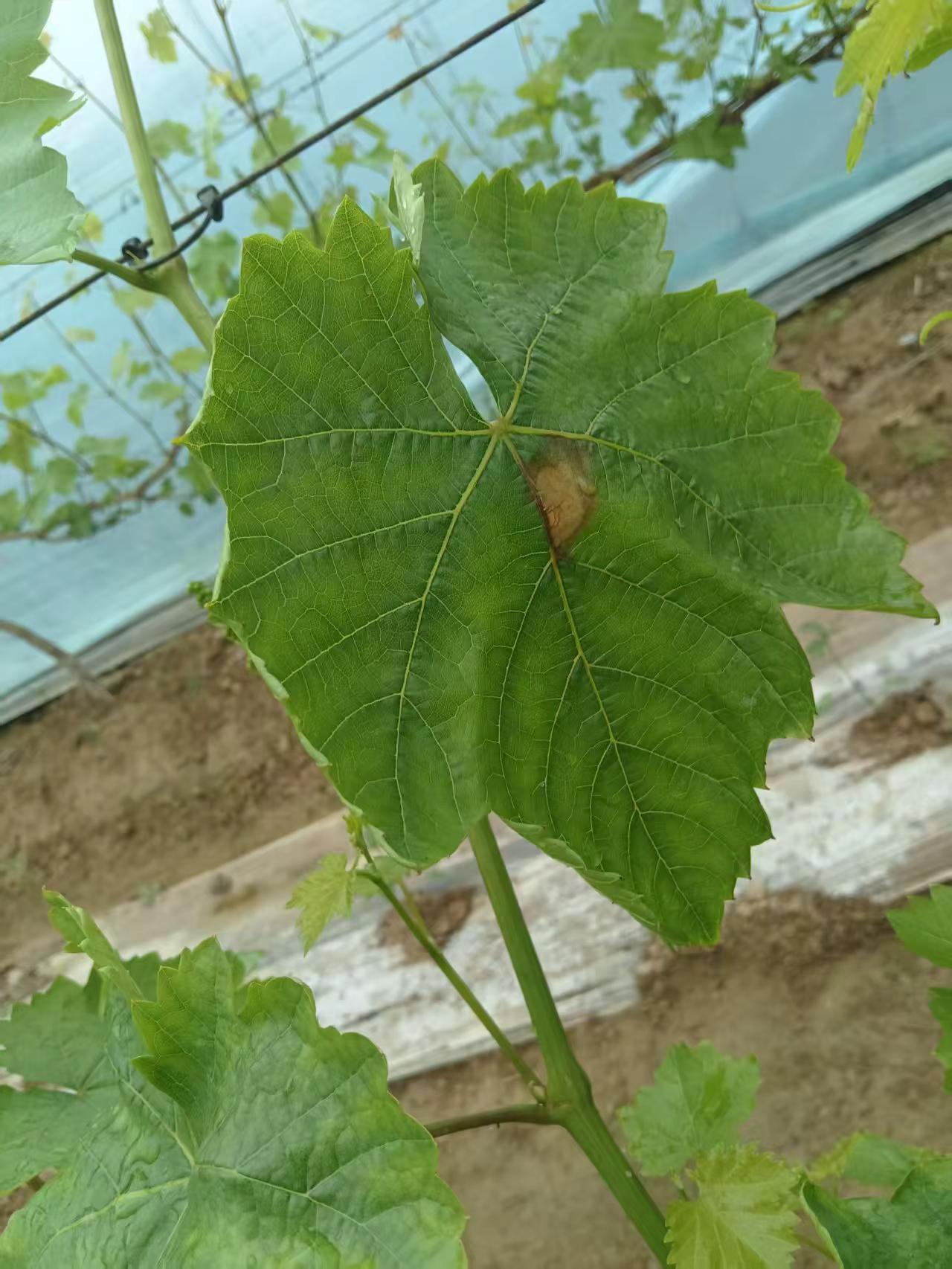 授人以渔,判断病害。1.一眼看到灰霉病斑,这是基本功,可细看还有别的。2.叶子边缘薄,这是根系僵黄衰退的表现。缺少新根赚钱少,葡萄依然源源不断花钱,老话叫“锅干瓢卡”。3.叶子边缘上翘,说明不愿接触阳光,真没钱了!4.中下部叶子黄,不仅是上述原因,萌芽后管理也不够踏实,积累不够。