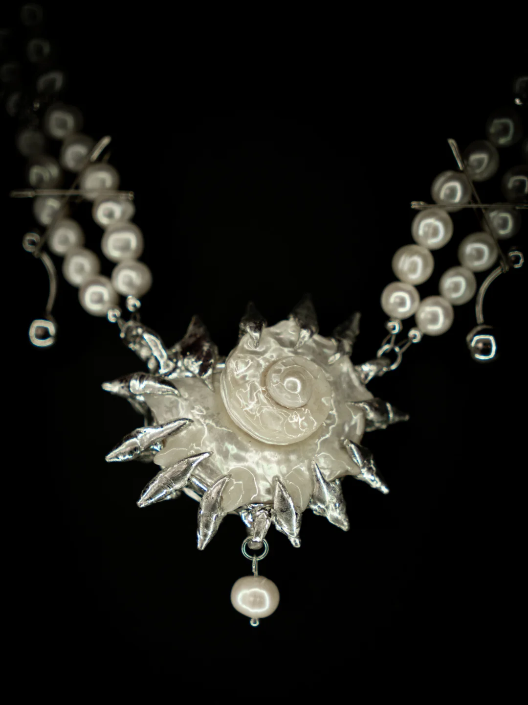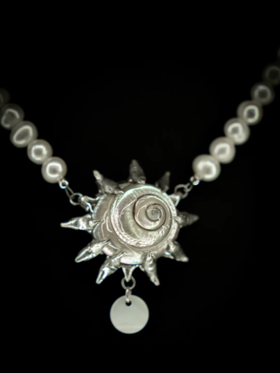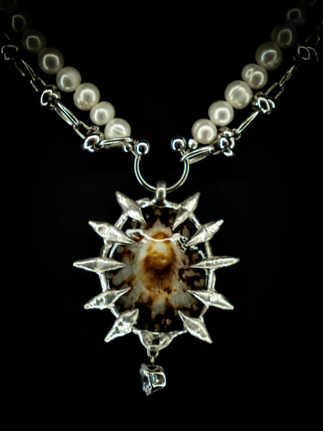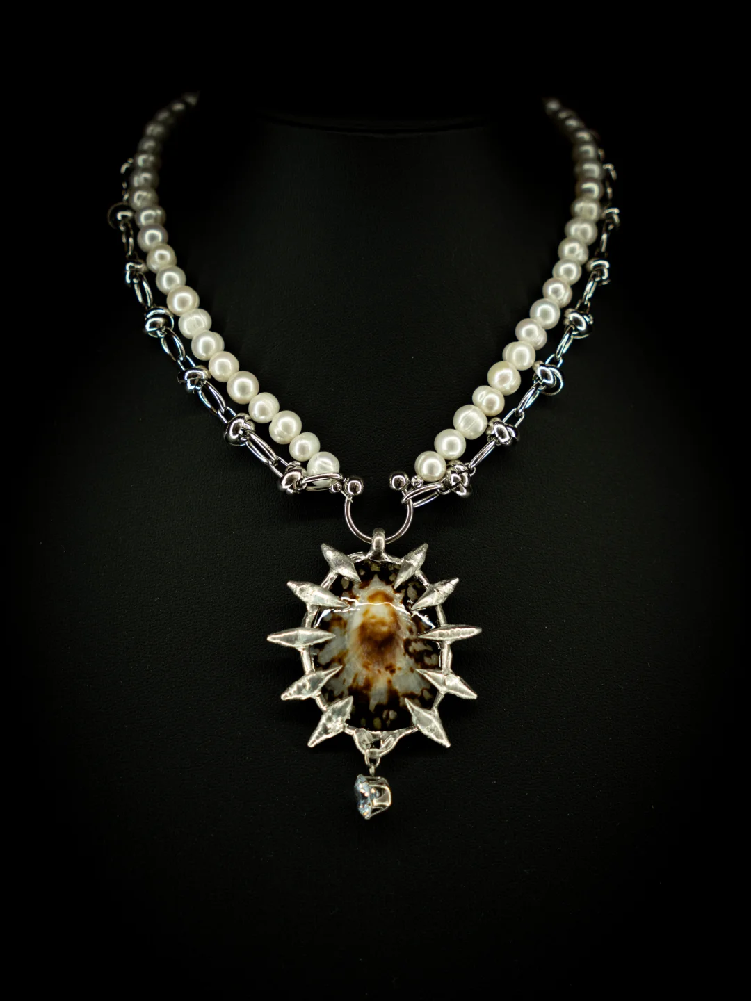 手工锻造的银刺,天然甄选的贝母,