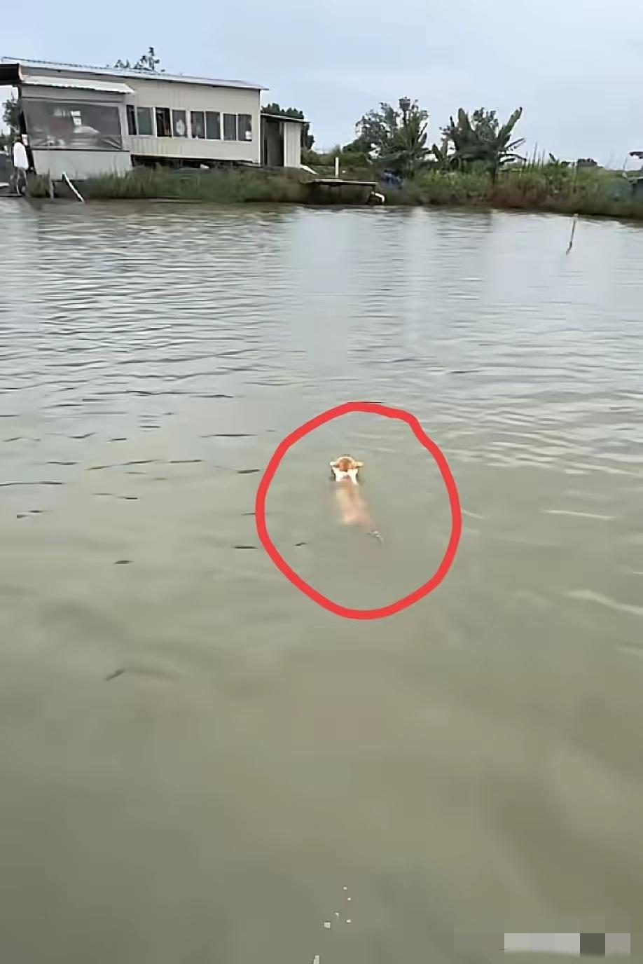 只见这货从对岸草丛钻出来,连犹豫都没犹豫,踩着岸边的干草直接下水泅渡。