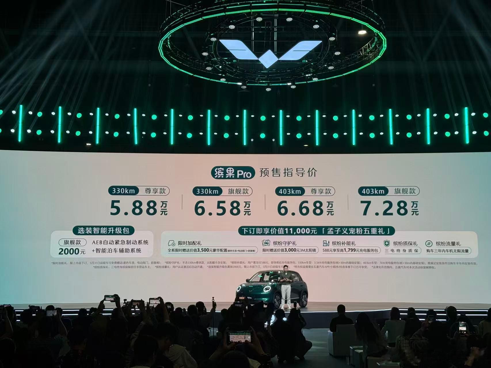 4月14日,五菱缤果Pro在杭州预售发布,价格5.88万-7.28万。