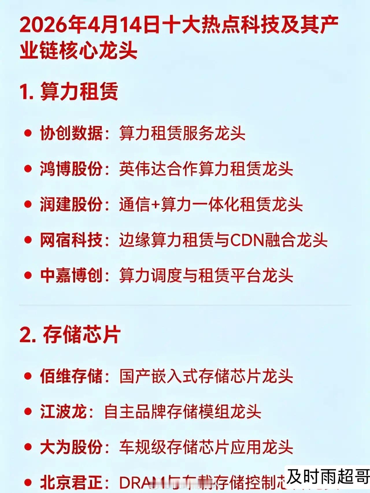 2026年4月14日十大热点科技及其产业链核心龙头1. 算力租赁协创数据:算力租
