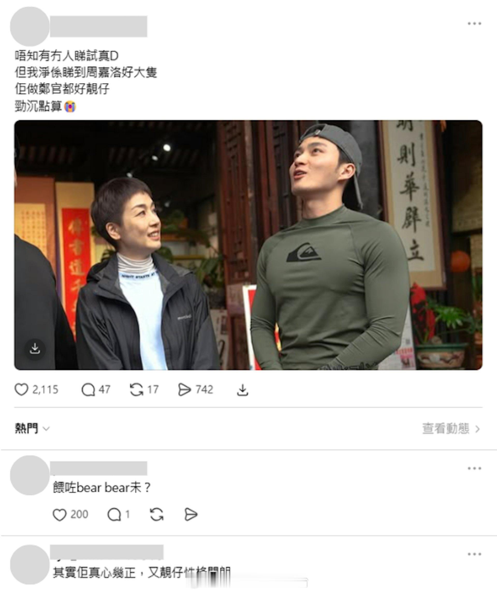网民大赞看到饱有网民发帖激动表示:“不知有没有人看试真D,但我只看到周嘉洛好大只,他演郑官都好帅,心动到不行怎么办😭”,帖子一出随即引来大量回应,不少网民纷纷留言垂涎他的惊人胸肌:“那个胸肌🤤🤤🤤”、“真的,整个节目光看他的肌肉就够了😍”、“眼神完全没离开过他”。