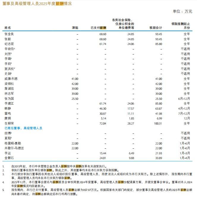 境内对比:中行董事长、行长 2025 年税前年薪均为92.85 万元,其他境内高管普遍在21 万 —85 万元,与境外高薪差距显著。