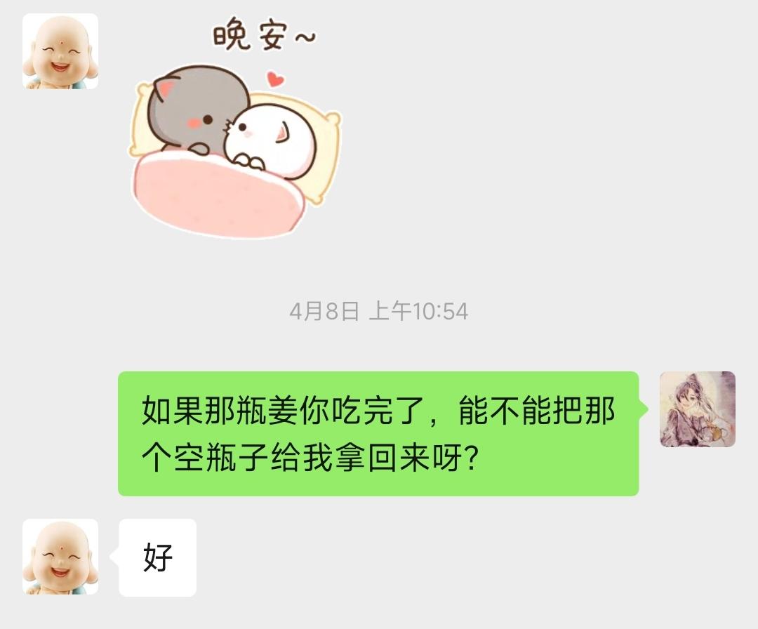 然后跟老公说,他吃完的瓶子能不能给我拿回来。