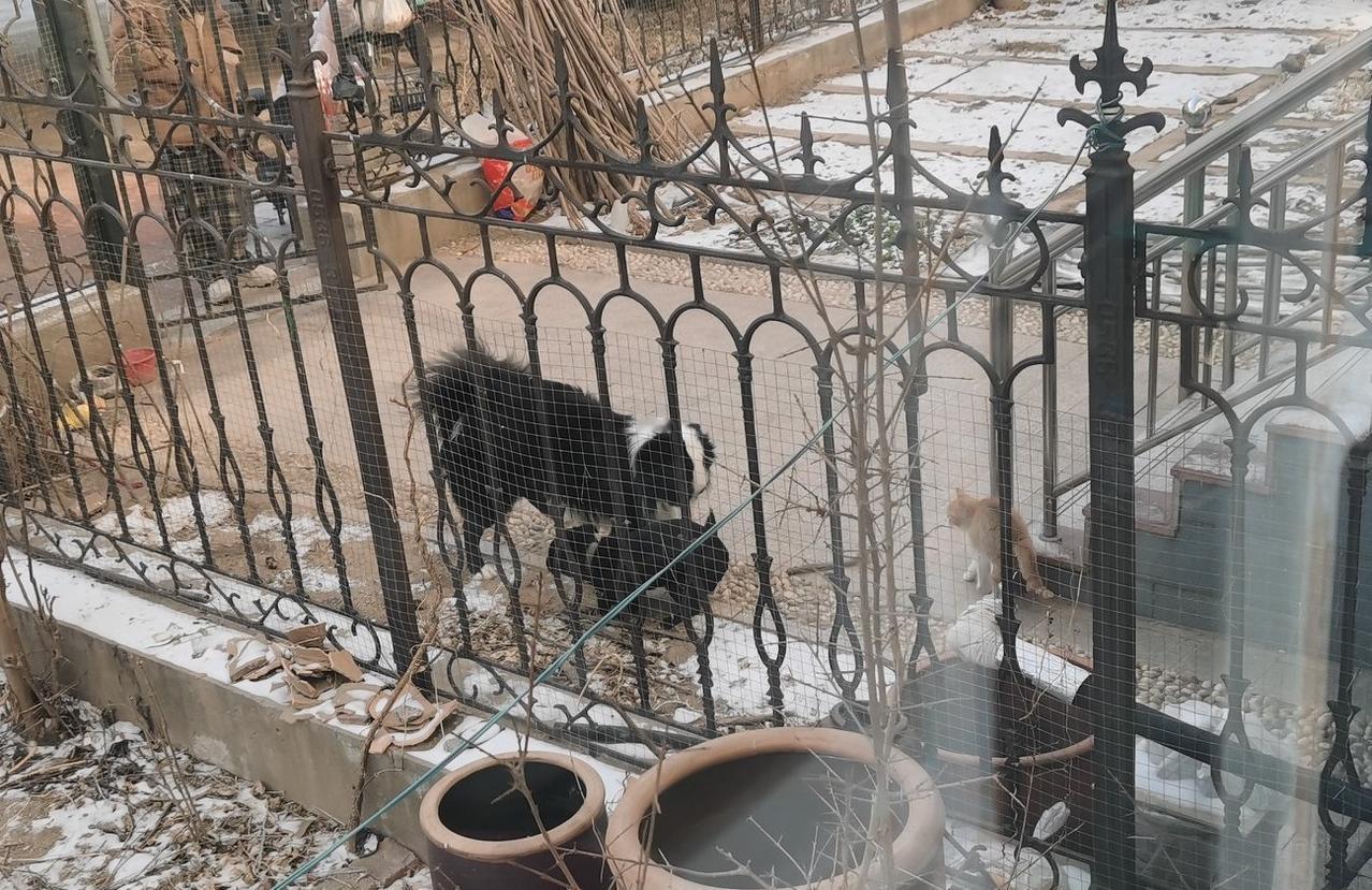 不光小朋友喜欢找小黑玩儿,邻居家的狗狗,没事也爱到小黑家做客,主人使劲拽绳子都拽不出去,看样子小黑是个很热情的小主人哦!
