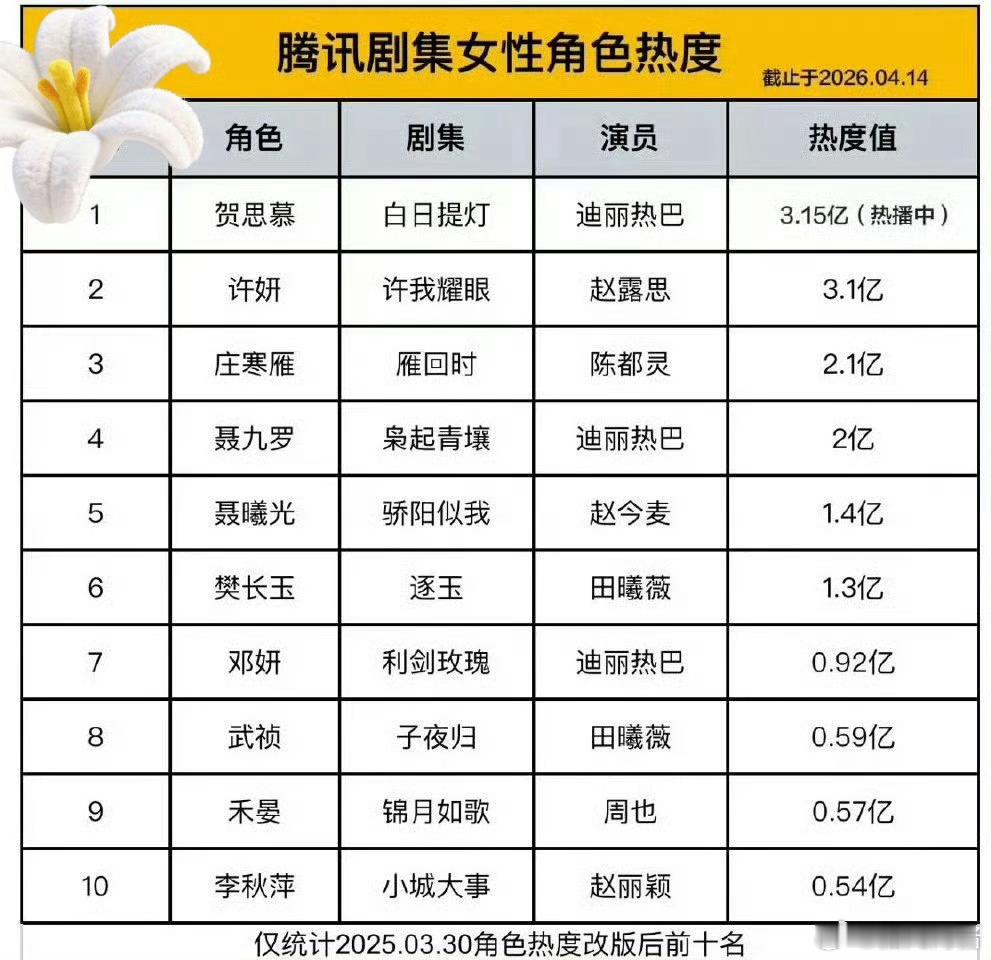 腾讯剧集女性角色热度值 迪丽热巴都是真金白银赚钱的剧 一个改版前免费第一 一个改版后氪金第一 改版後的評比較具有公正性,少了很多灌💦