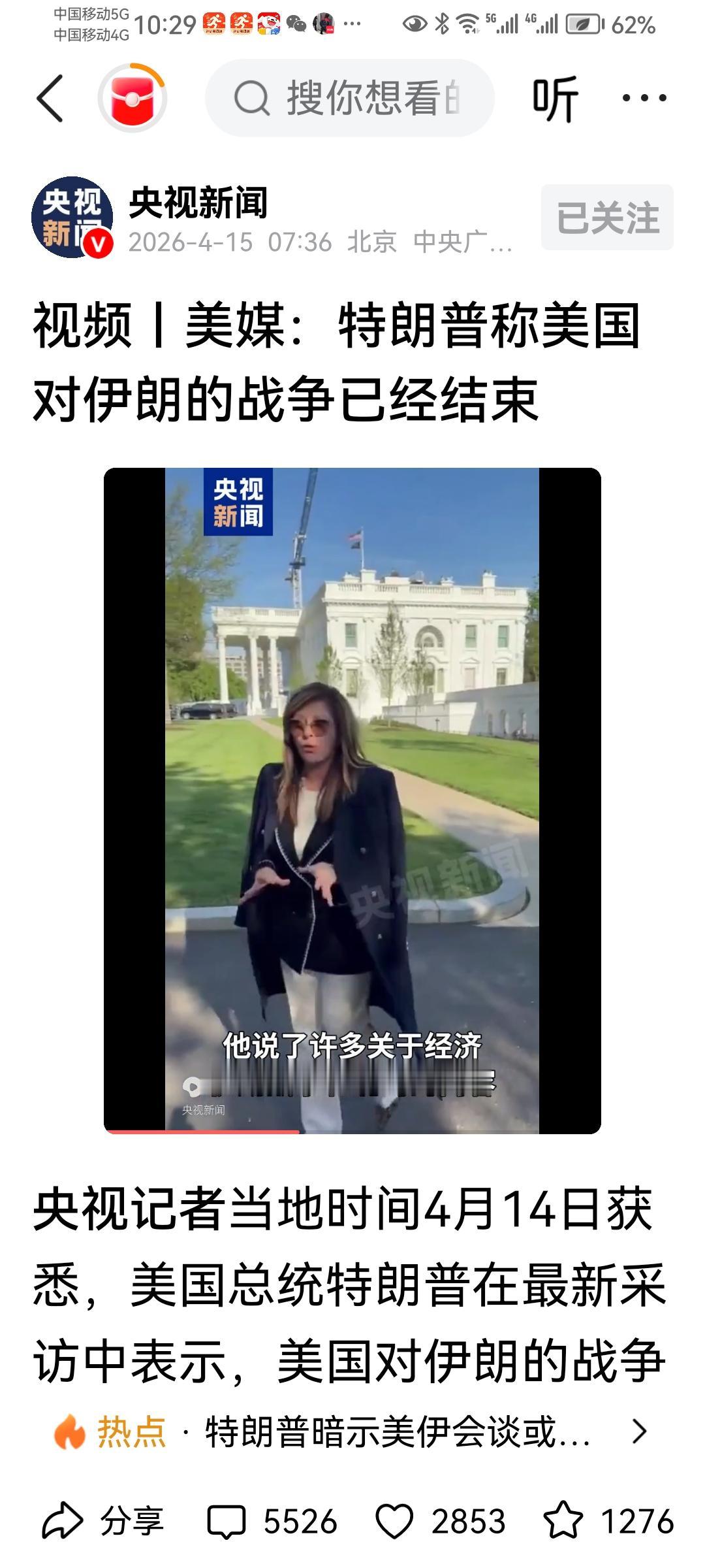 真是吃惊!美国福克斯新闻记者玛丽亚·巴蒂罗莫14日在社交平台发布视频称,她刚刚对特朗普进行了采访。此次采访涉及经济、伊朗局势以及北约等议题。美国总统特朗普在最新采访中表示,美国对伊朗的战争已经“结束”。昨天还派雄兵封锁霍尔木斯海峡的特朗普,今天突然又说美伊战争结束了!这是真的吗?