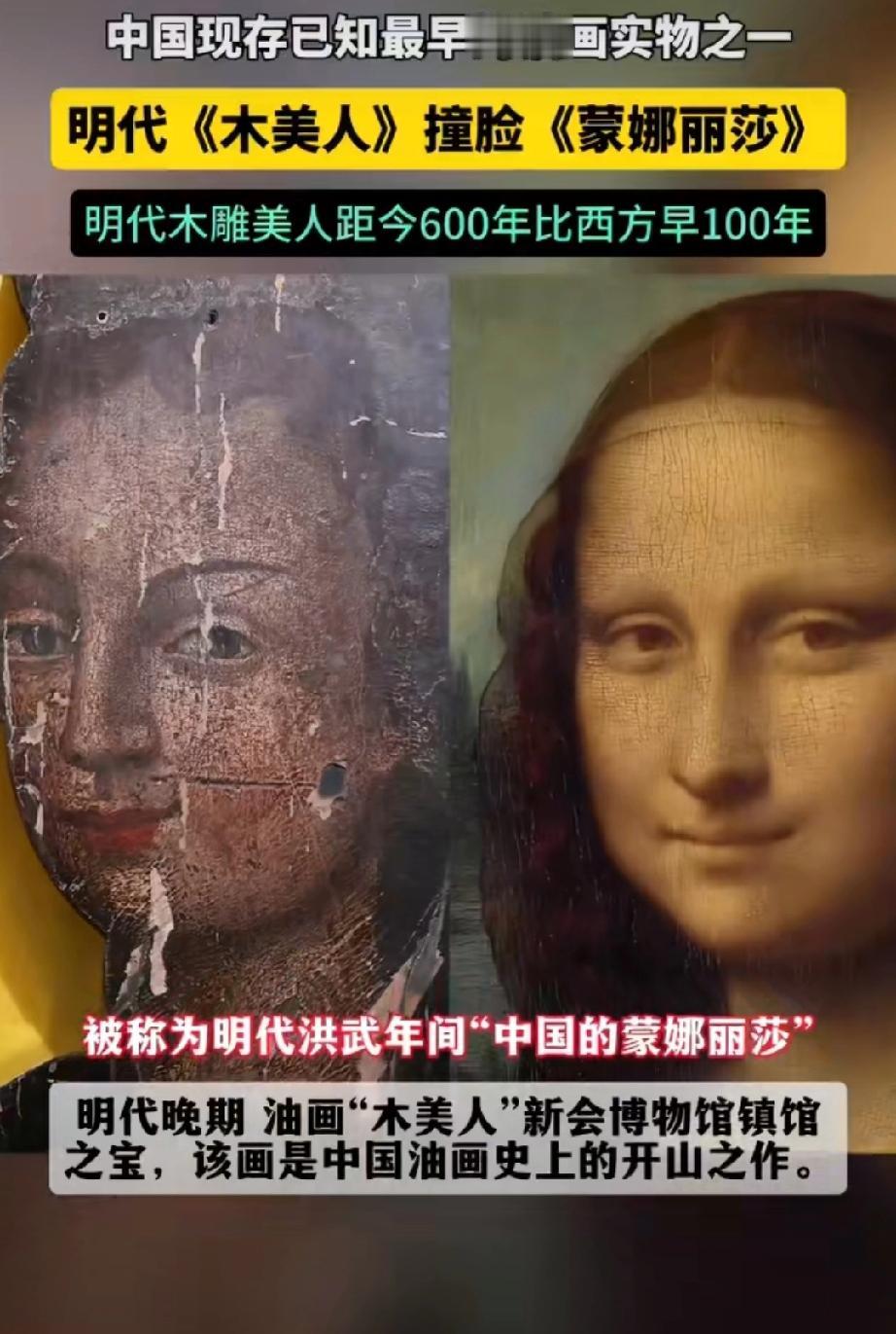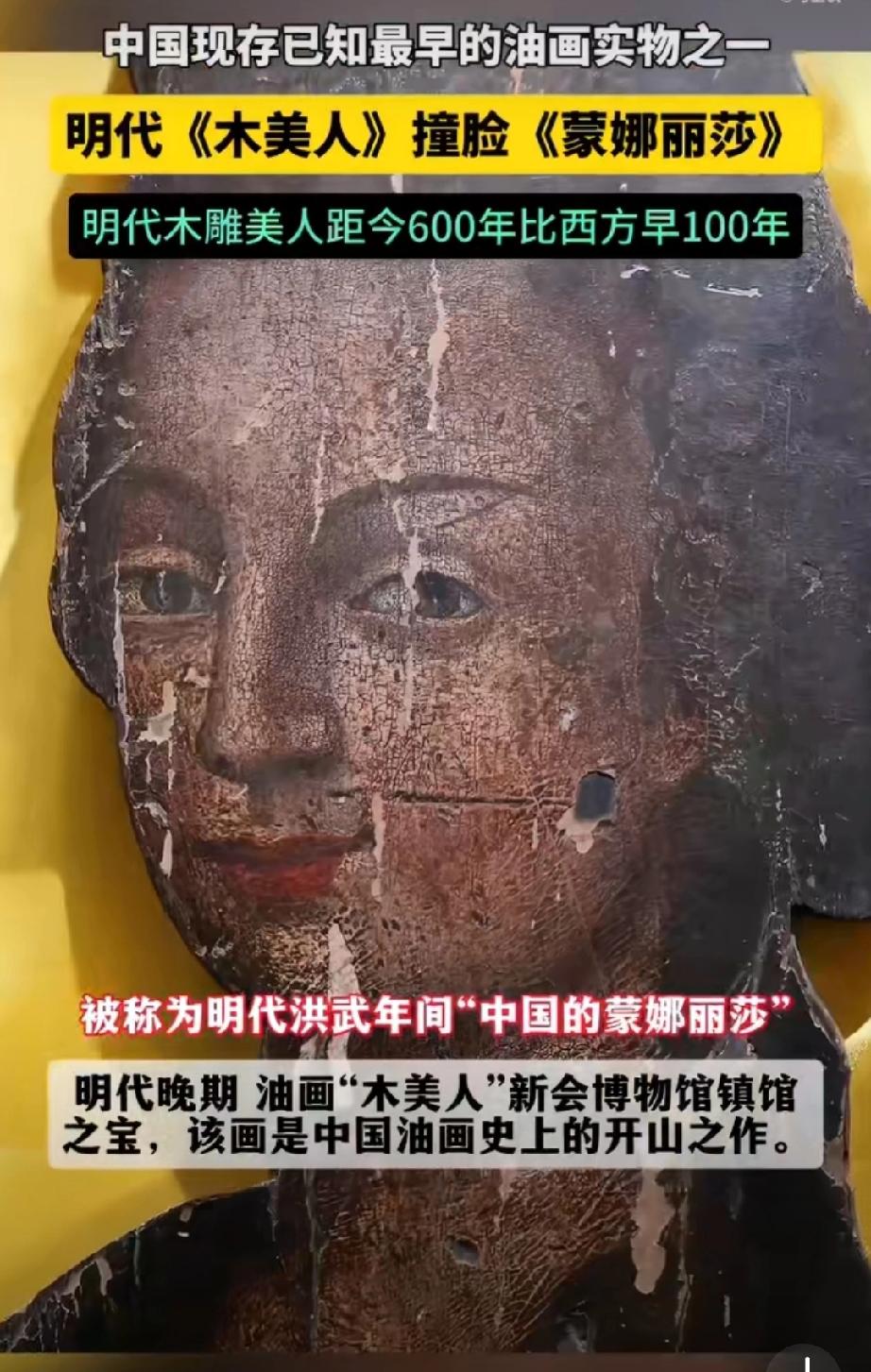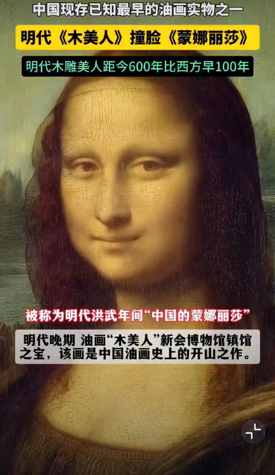 明代油画《木美人》撞脸达芬奇《蒙娜丽莎》,且早一百年。古典油画女郎 中国古代画作