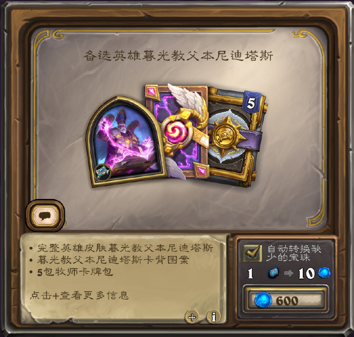 炉石传说 巨龙之战活动,最终死亡之翼阵营获胜,选择死亡之翼的玩家可以额外获得英雄皮肤暮光之父本尼迪塔和卡背,而选择巨龙阵营的,只能自己去商店里买,合集60元。