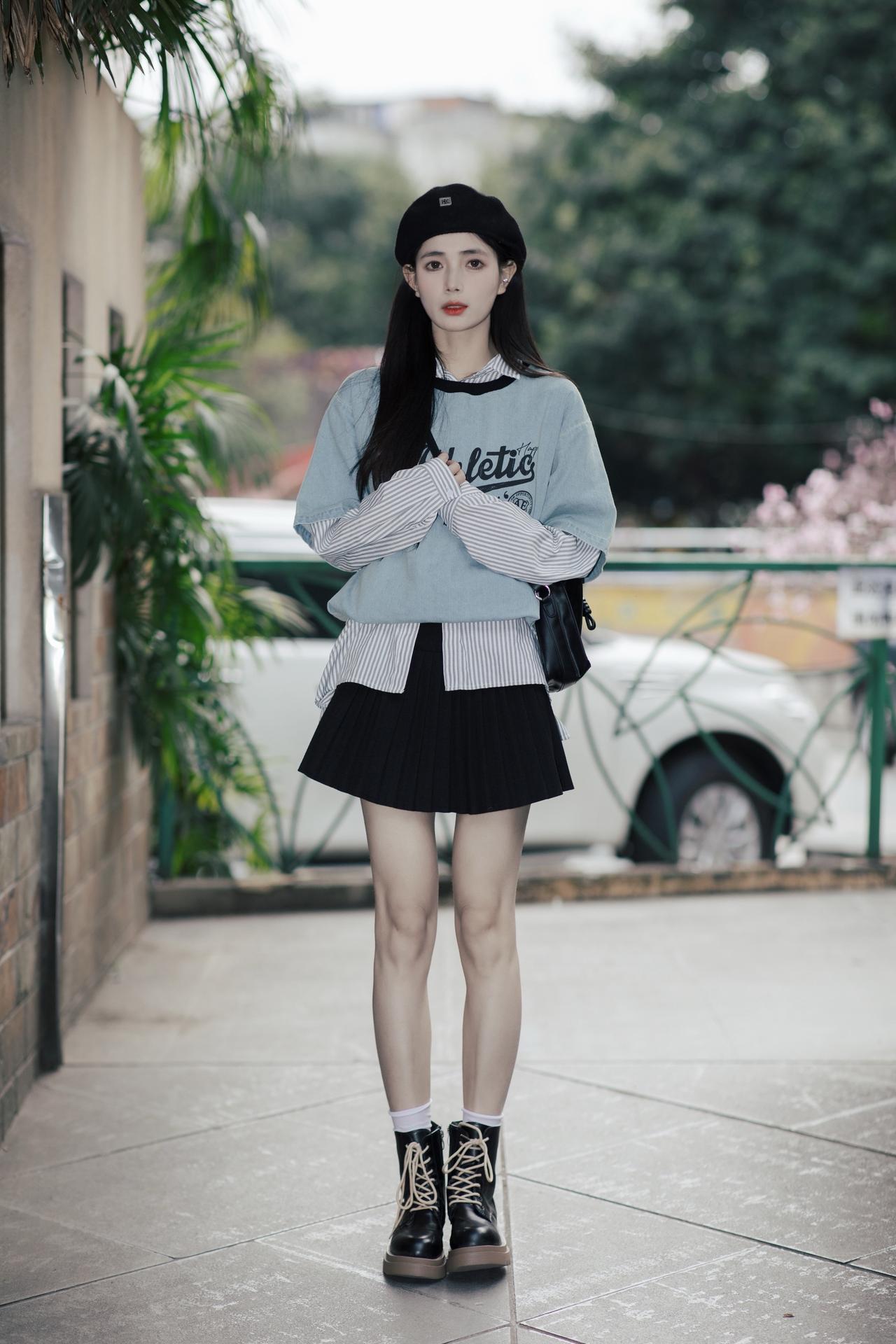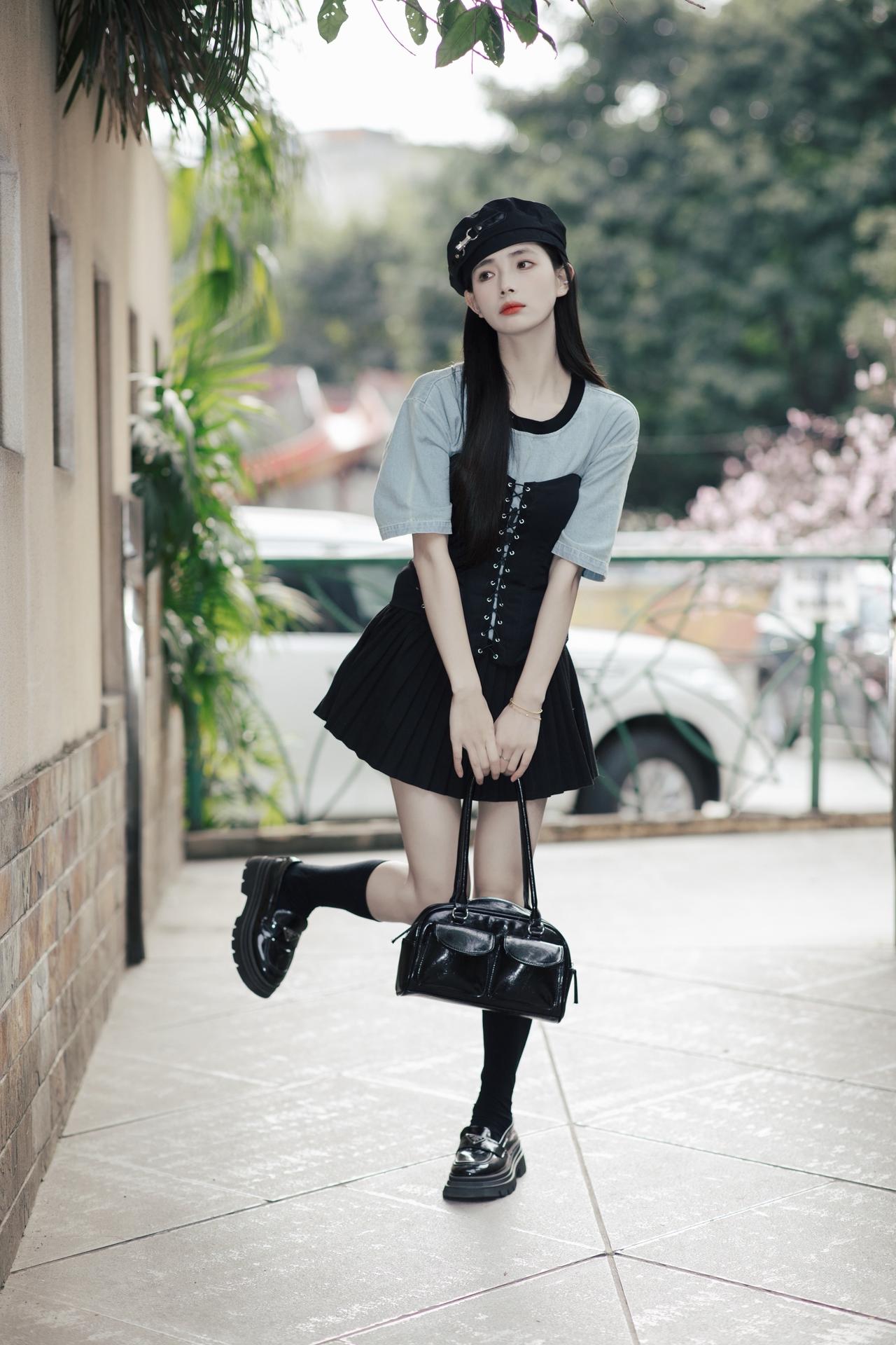清新学院风穿搭,白色衬衫+黑色百褶裙,甜美又优雅!💕