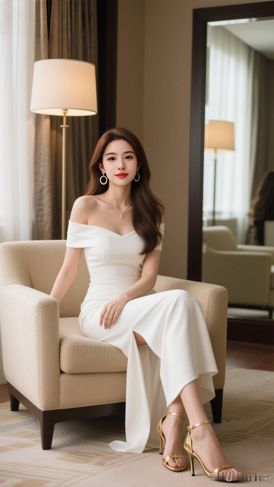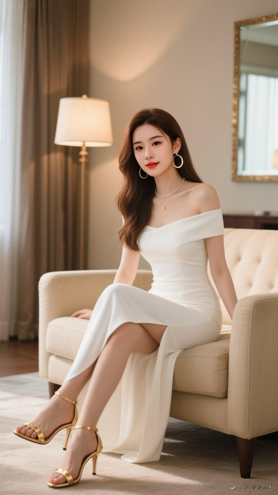 优雅白裙,性感高开叉,时尚金鞋,完美搭配!妥妥的时尚丽人。气质配裙鞋