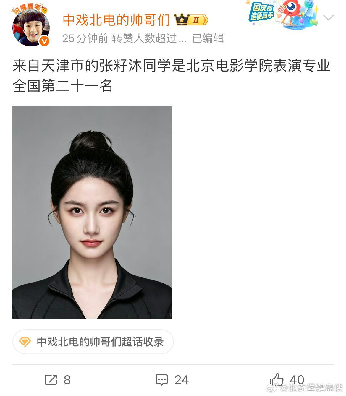 张籽沐北电全国第二十一名看着长大的妹妹太厉害了,艺考改革难度拉满,还能考进北电小圈,多校拿证,文化课稳住就稳了。