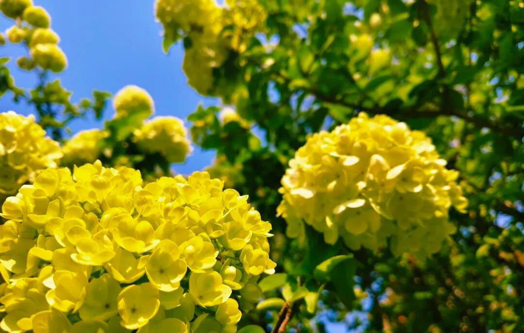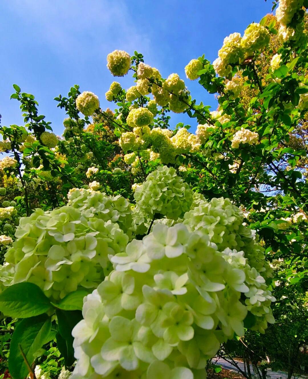 三五天时间,那些碧玉般的花团,就慢慢晕染成纯洁的雪白色,进而舒展成一朵朵雪白的花球。这些白色的花球,映入双眸,便是一种充盈饱满的视觉盛宴,壮观又震撼!