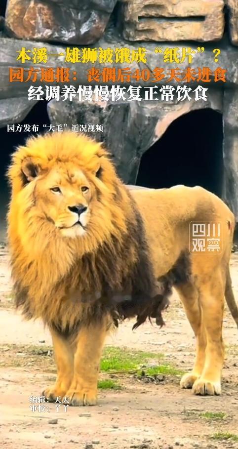 雄狮丧偶绝食40天瘦成纸片 动物界的深情瞬间 辽宁动物园狮子逐步好转