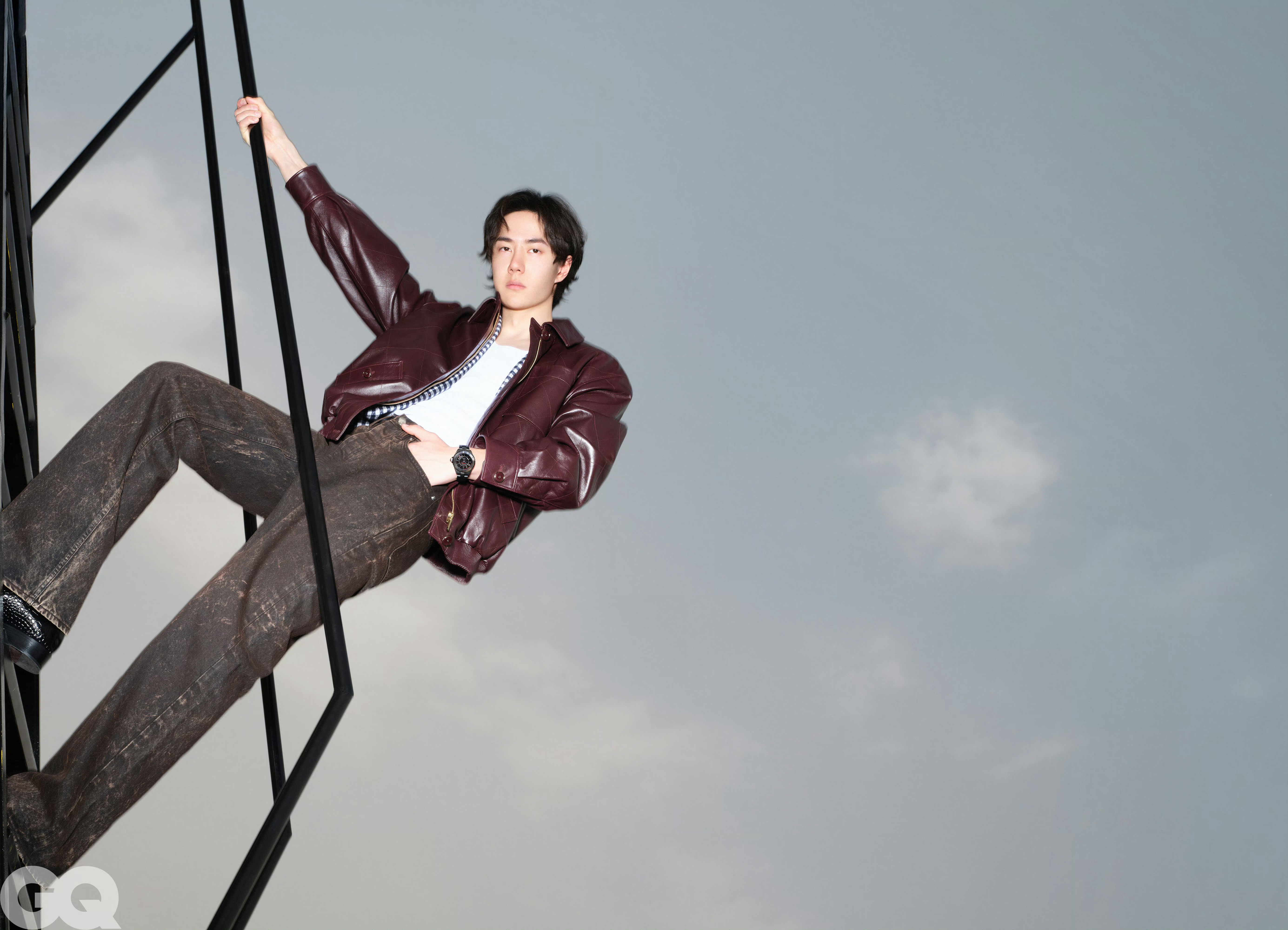 GQ四月王一博封面GQ王一博登高大片王一博登上《精英GQ》四月刊双封面,腕间率先