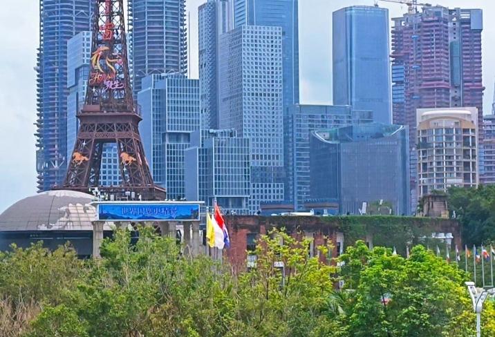 全世界像深圳这样大手笔建设超高层摩天楼的城市并不多,尤其是近几年,很多城市暂缓了建设超高层摩天楼的计划,但深圳没有反而提速了。这是从深圳世界之窗的角度拍深圳湾超级总部中心,我觉得真的是一个完美的角度,世界之窗的埃菲尔铁塔和深圳湾超级总部的C塔遥遥相对,就成一幅独特的城市天际线。不要再说深圳没有壮观的天际线了,这里深圳的天际线可以跟任何一座城市的天际线媲美,不过要在给深圳几年时间。 摩天楼