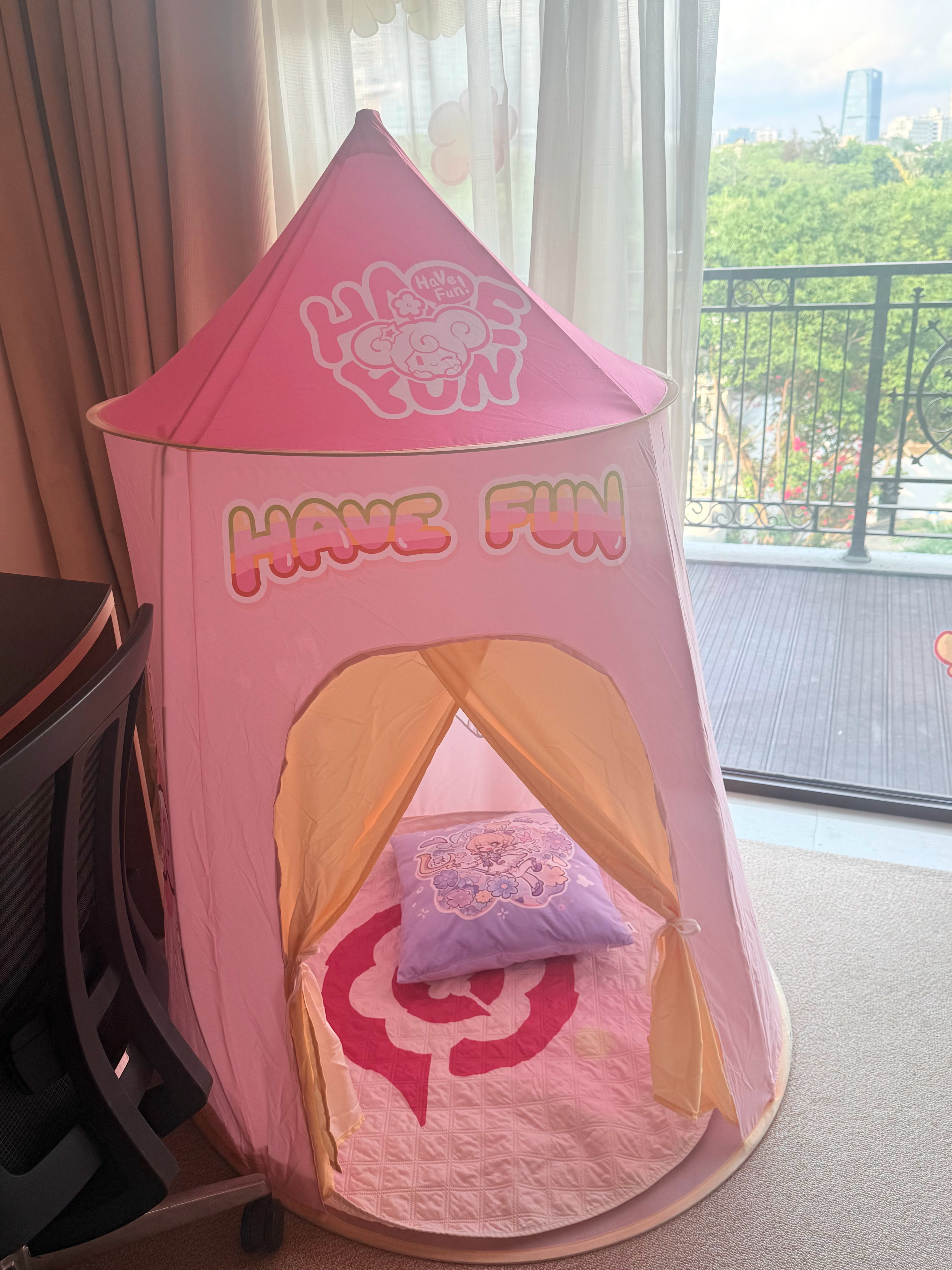 也是让我住上儿童房了谁还不是个宝宝呢咋的,今晚住帐篷🏕️?