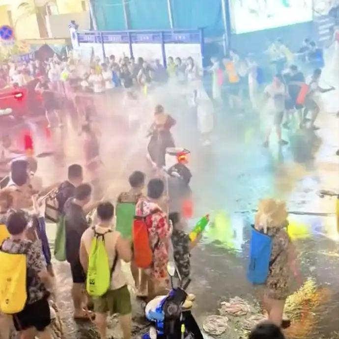 [石化]西双版纳泼水节两女子遭围堵喷射 泼水节首日,西双版纳景洪星光夜市路段,两