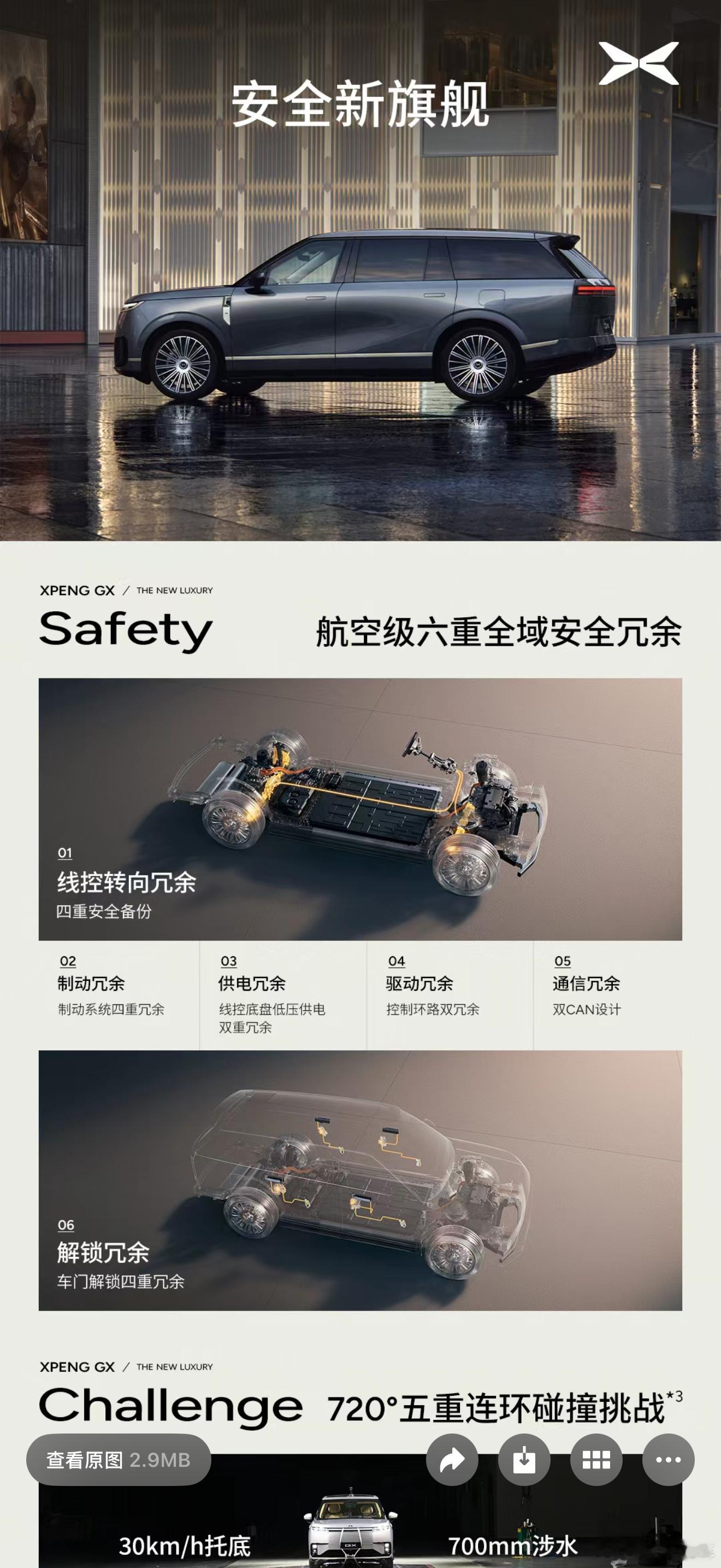 小鹏GX预售39.98万元,提供纯电/超级增程版,纯电续航最高750km,综合续航1585km。基于SEPA 3.0架构,搭载航空级六重安全冗余与11气囊,被动安全拉满。配备原生线控底盘与后轮转向,操控灵活。智驾算力至高3000TOPS,支持L4级能力与驾驶员失能辅助。车内三排电动可调、零重力座椅,配智能冰箱、调光玻璃,空间与舒适同级领先。新科技旗舰小鹏gx今晚预售小鹏gx把四大安全测试场搬到发布会