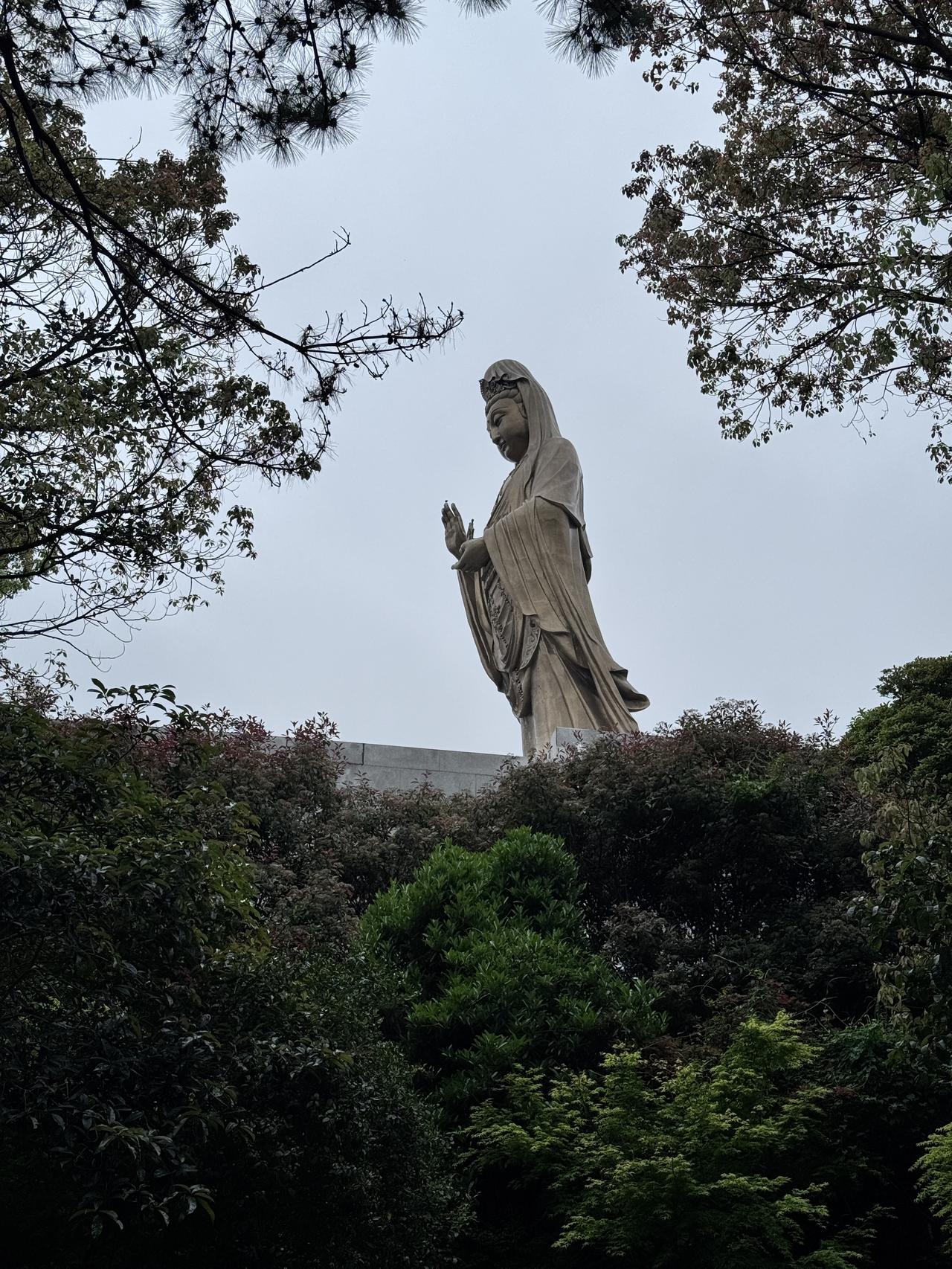 我们拜完观音后准备乘景区公交到缆车站乘缆车去普陀山最高的寺庙惠济寺,但到了缆车站让排队的人吓到了,密密麻麻全都是人,估计没有2个小时都排不到。于是我们决定不去惠济寺了,直接乘车去法雨寺,然后去了梵音洞,最后参拜了南海观音大佛。