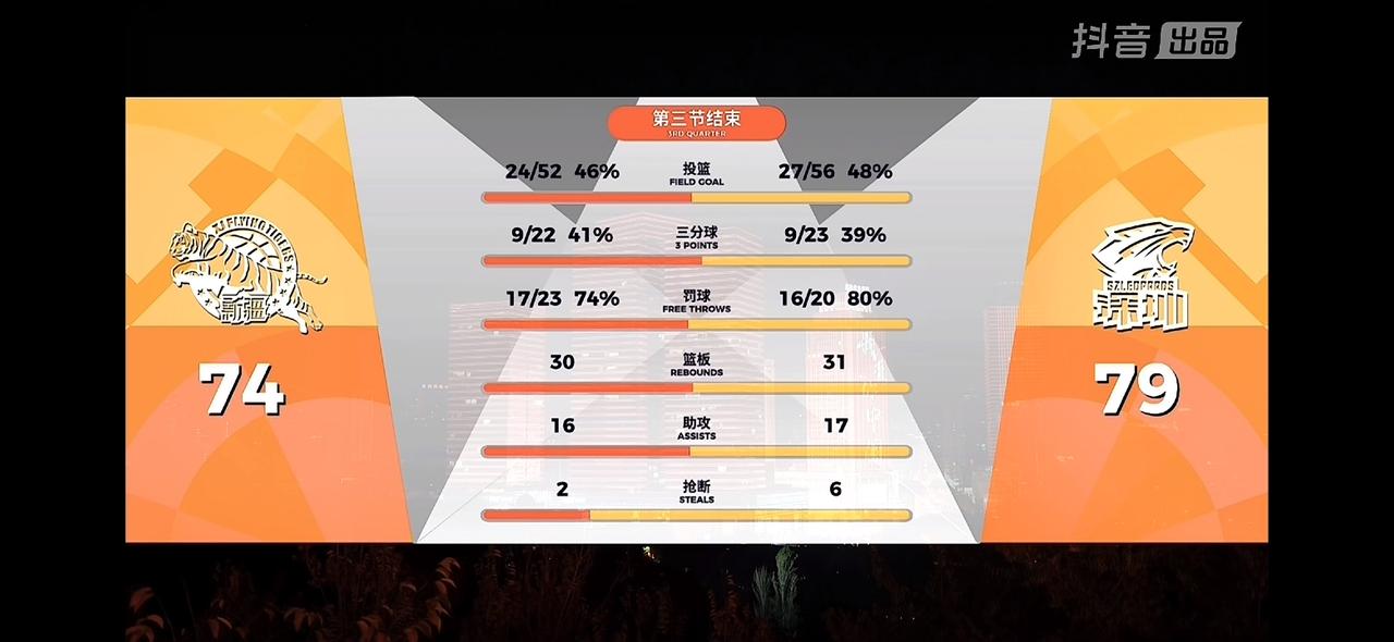唉😮💨!第三节比赛打完,新疆飞虎男篮还是落后了!