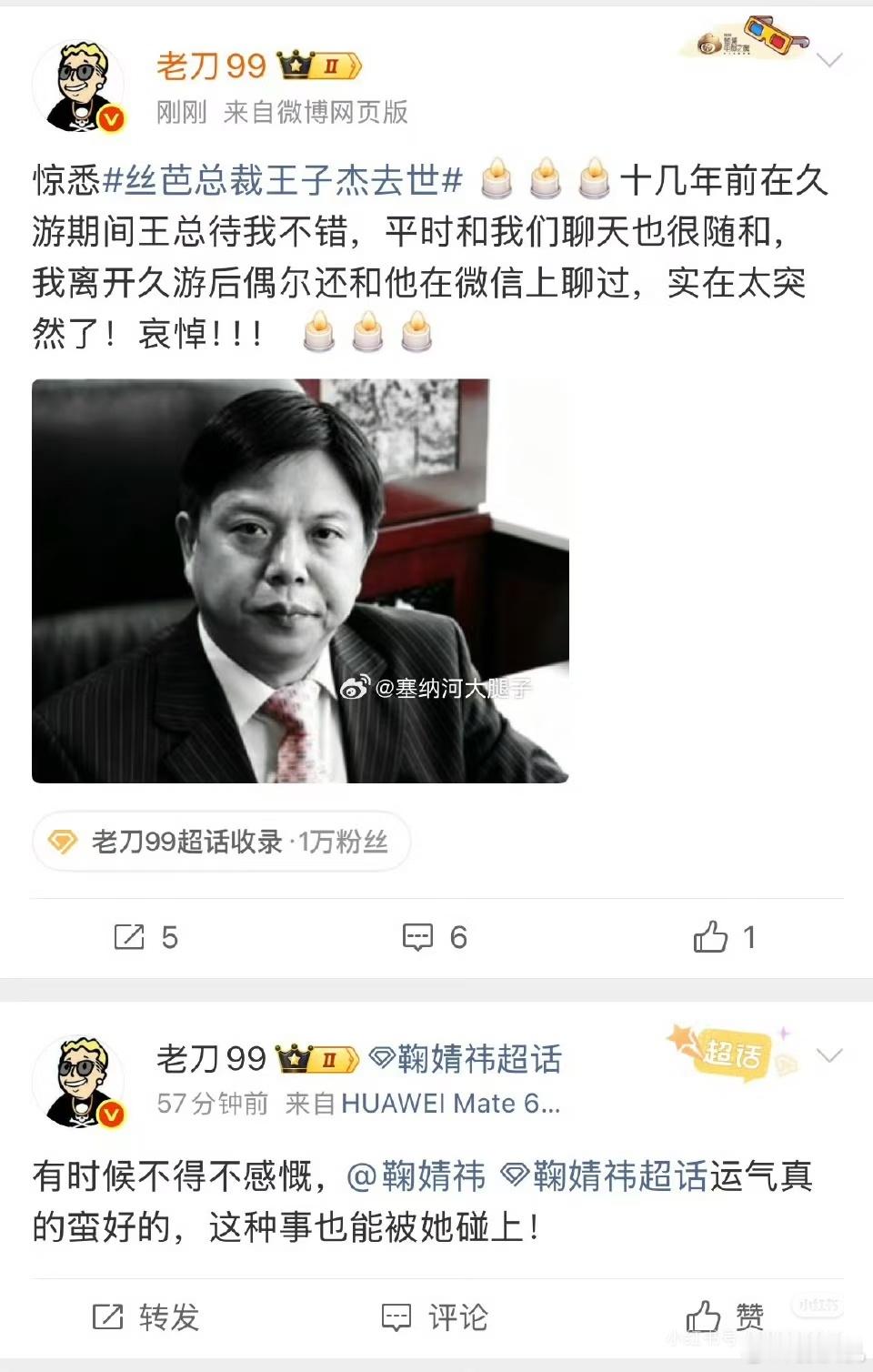 怎么全网都在传鞠婧祎前老板,丝芭传媒的老总王子杰死了??网友还说确认了说明天会公布这个消息(听口气这个网友自曝跟王子杰认识
