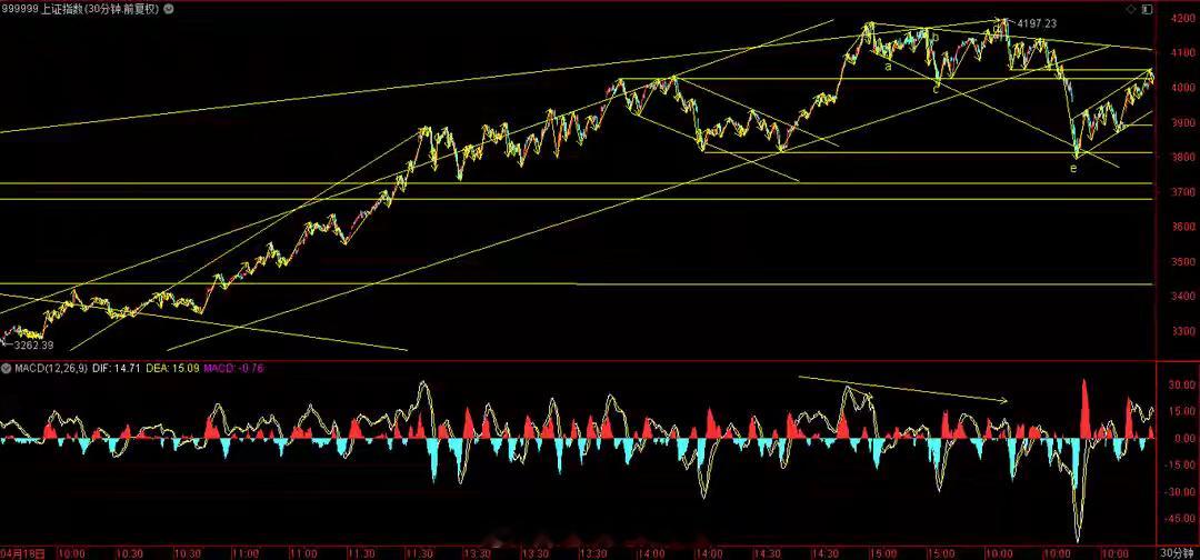 暂时受阻于60日线,下方关注是否回踩4000和回补3991缺口!日内,3大指数高开低走,上证指数勉强收红,深圳两大指数分别下跌0.97%和1.22%。成交量,两市合计24153亿,相比昨天放大316亿。板块方面,银行护盘,医药和电网设备等稍有所表现,锂矿,化工,油服工程,影视院线,玻璃玻纤,元器件,光伏设备,通信设备等跌幅居前。指数今天盘中最高冲到4052点,逼近60日线,然后转头向下,说明60日线附近有一定压力,需要震荡一下,等60日线降下来,然后再寻求突破,才会较为合理。在目前位置,不宜急于求成,稳扎稳打才是最佳策略。后市下方,盯住4000和3991缺口,大概率要回踩一下和回补缺口,问题不大。上证指数30分钟走势来看,macd死叉,倾向调整。大盘综合评分:3.25分(满分为10分,5.5分及格),短线操作难度评分: -30分(满分为100分,60分及格),市场情绪:差(主观感受,主要分为好,差,中性),市场状态:中期处于平衡市,短期看震荡。两市涨跌比1723:3433,涨跌停比58:9,操作策略:中期防御,短期防御。附图是上证指数30分钟和日线图
