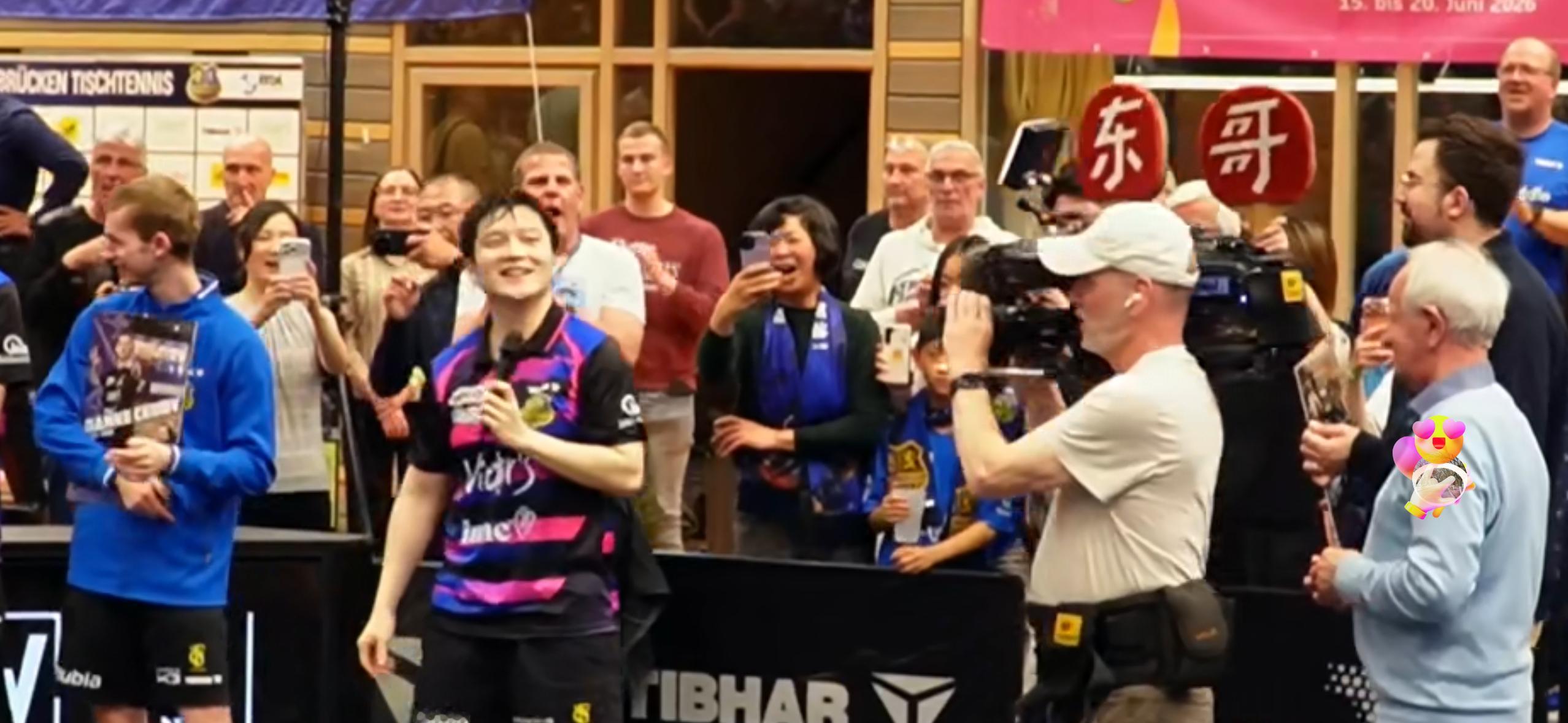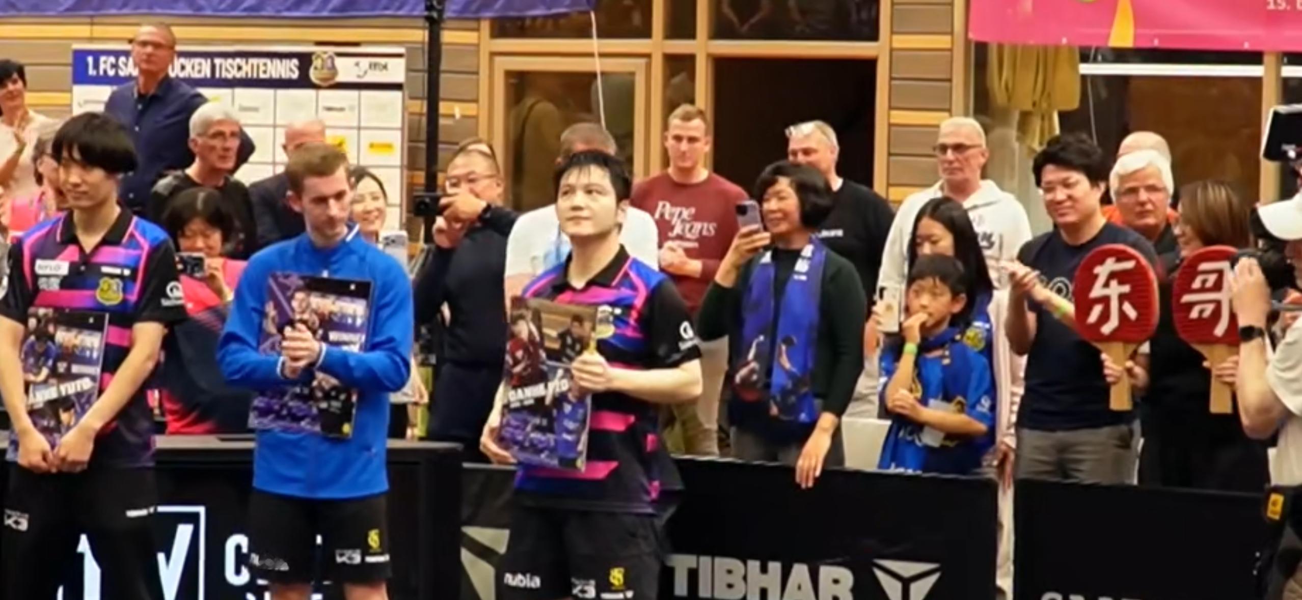 这样的仪式,温馨、温暖。在感谢樊振东时,俱乐部经理语言切换到英文,方便更多的人能