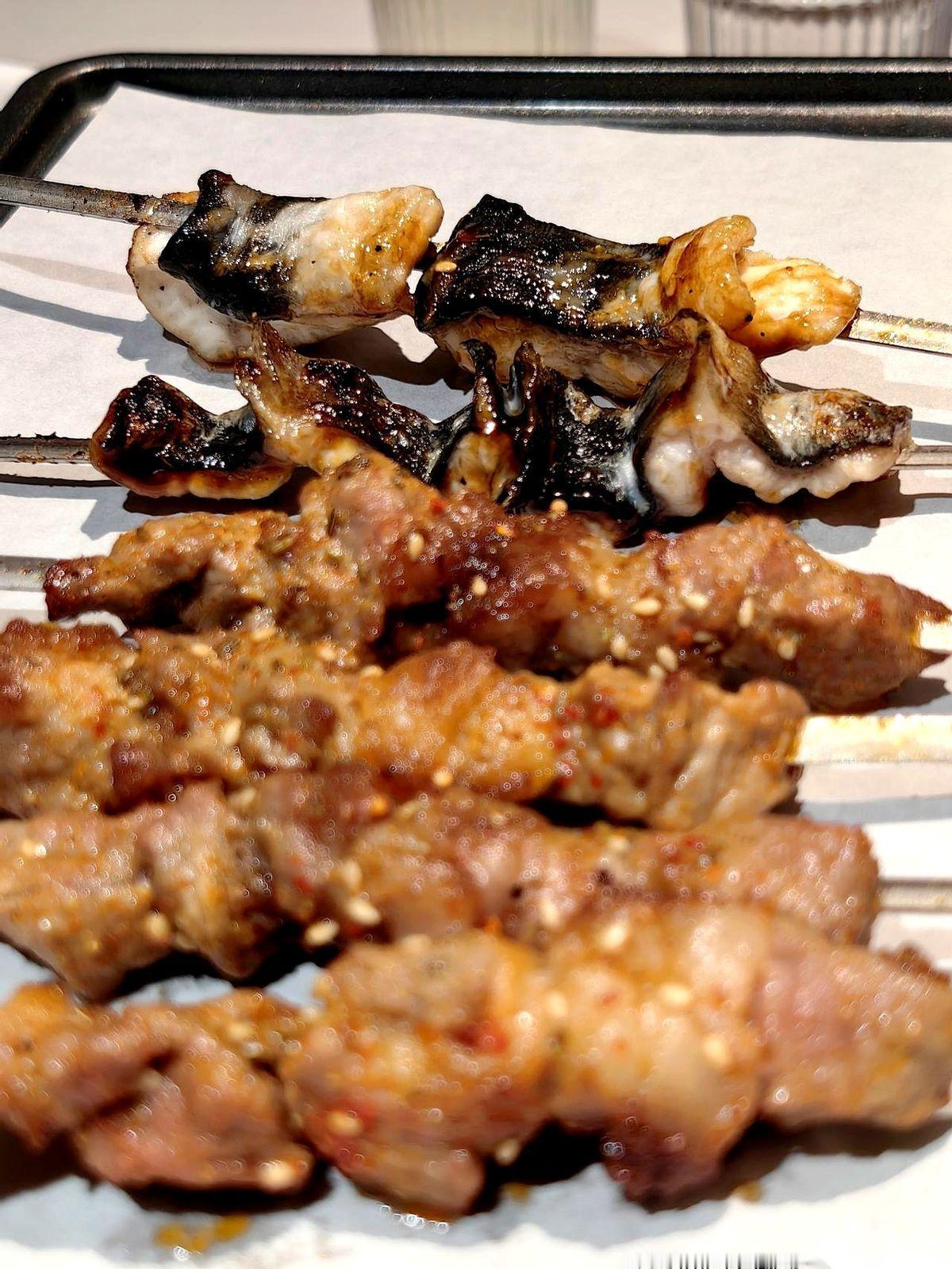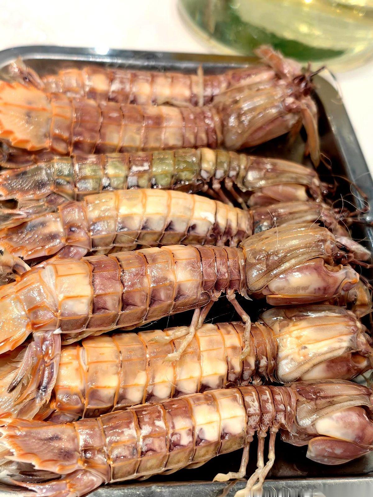 找个角落挤下,一口气点了皮皮虾、野生黄花鱼、鳗鱼烤串和一大盘蛤蜊。端上来的皮皮虾个头硬实,从尾巴往上一掀,虾肉紧绷绷地弹在指尖;黄花鱼外皮煎得焦脆,筷子一拨,白嫩的鱼肉直冒热气。