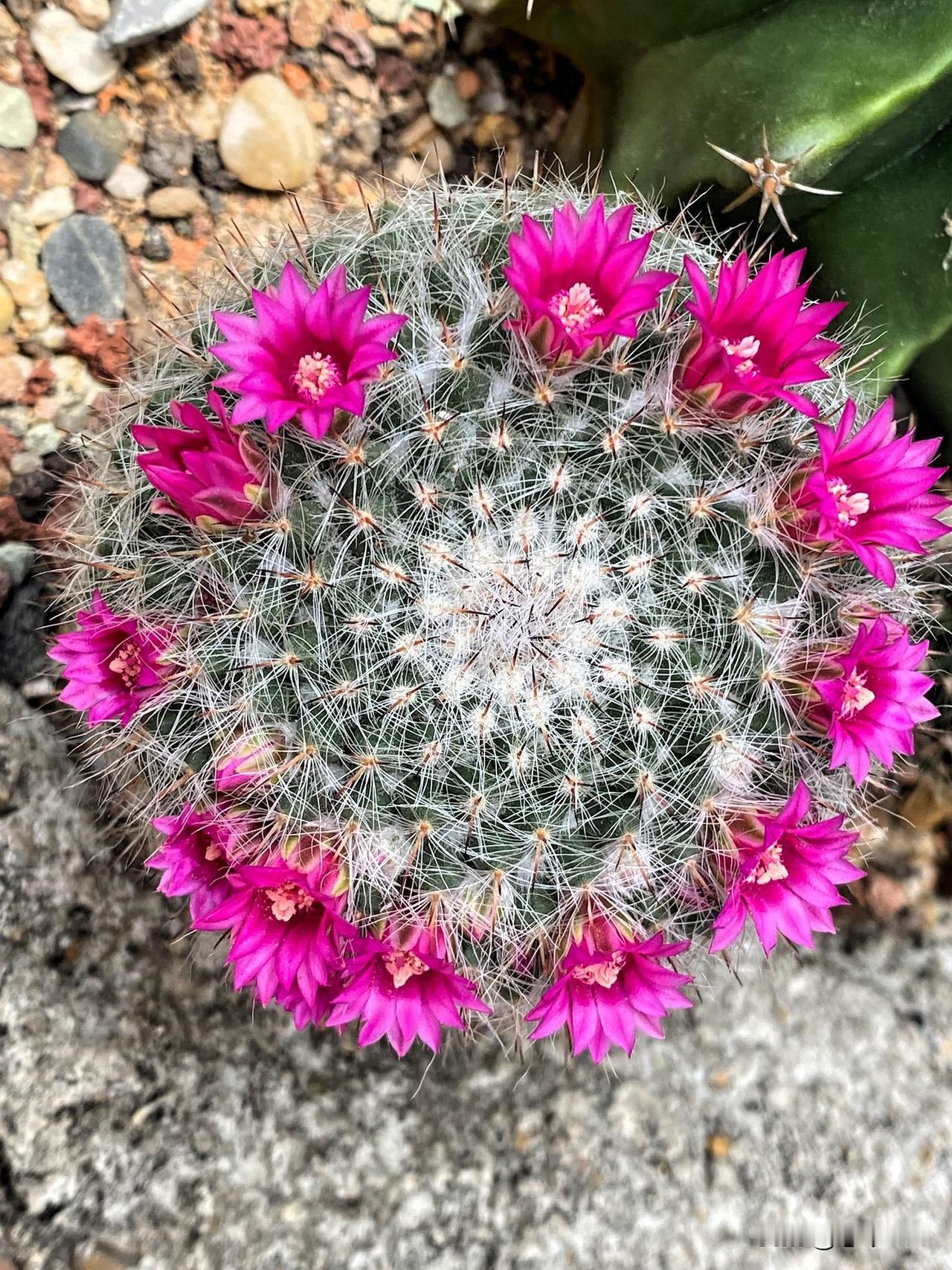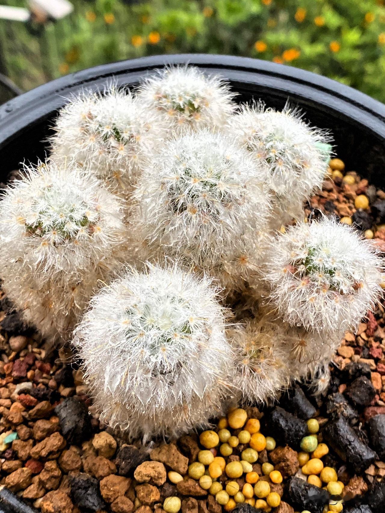 图5是开了一个月花的玉翁仙人球,终于开成了花项链。