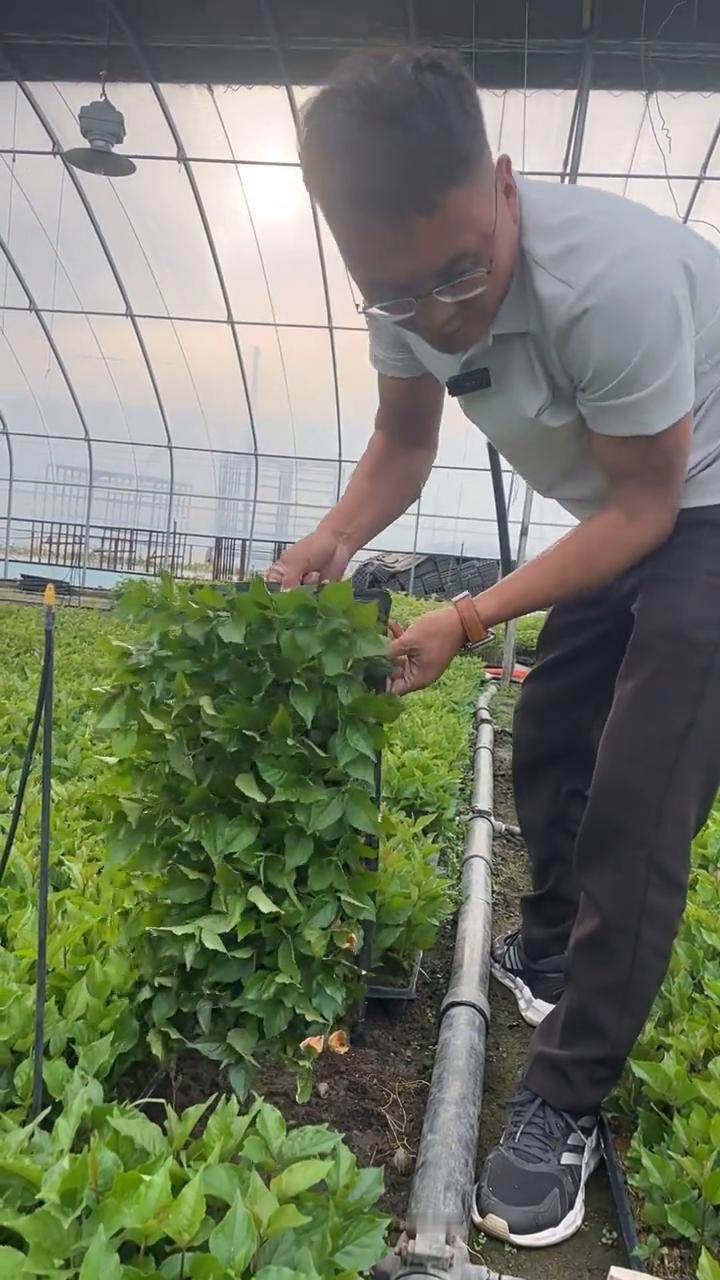 枕木有矮化的、纯矮化的吉他拉六号枕木,也有抗虫茶的吉他拉十七号枕木。给大家看一下吉六枕木的长势,现在这个时间已经完全木质化,发封完毕,完全适应外部的环境。给大家拿几颗看一下这根系,看到吗?爆球完美,随便拿一颗,就这种根系了。