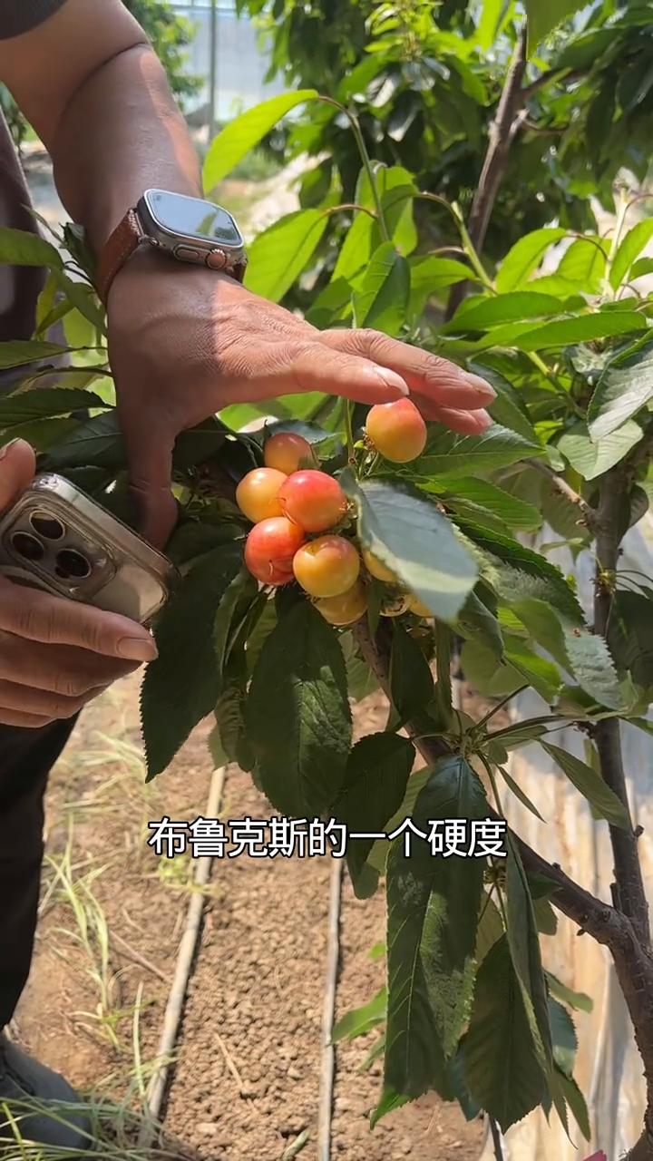 今年是第一年坐果,这个就是如意大樱桃,采用的是吉特拉6号枕木嫁接,经过嫁接以后,这个品种成花、爆果能力非常的强。