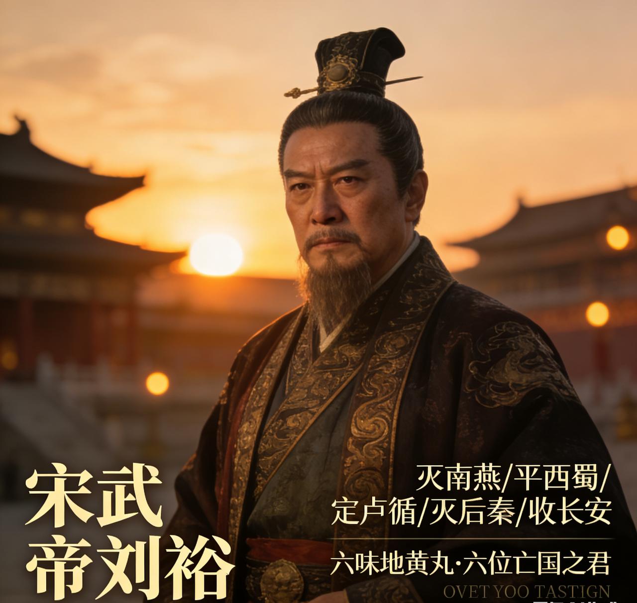 回顾他的一生,脚下踩着6个亡国之君的头颅,灭南燕、平西蜀、定卢循、灭后秦、收长安,创下了史诗级的战功,因此,他被后人戏称为“六味地黄丸”,调侃他“六味(六位亡国之君)齐全”。