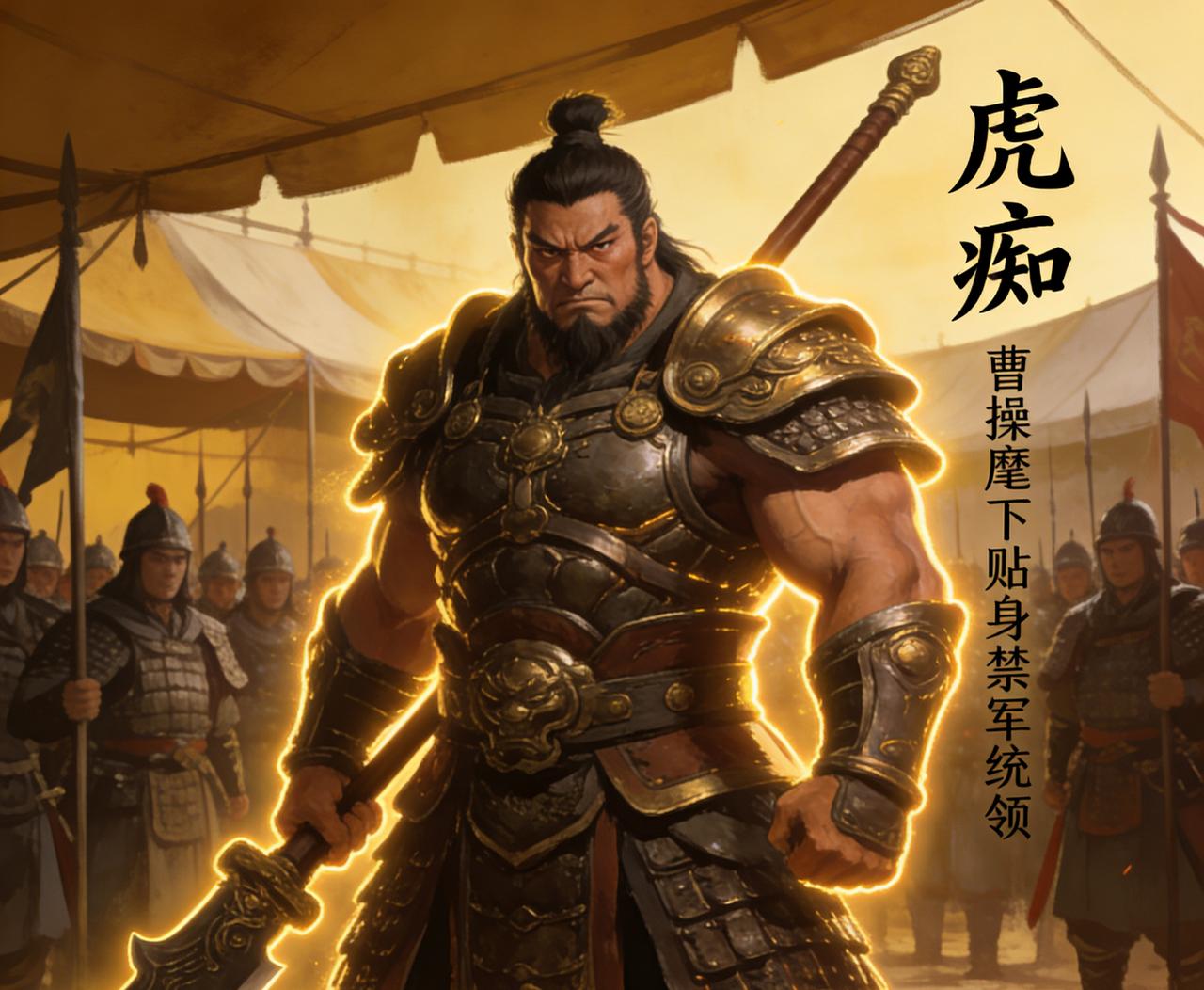 许褚身材高大,体魄雄健,勇力绝人,江湖人称虎痴,是曹操麾下最受信任的贴身禁军统领。