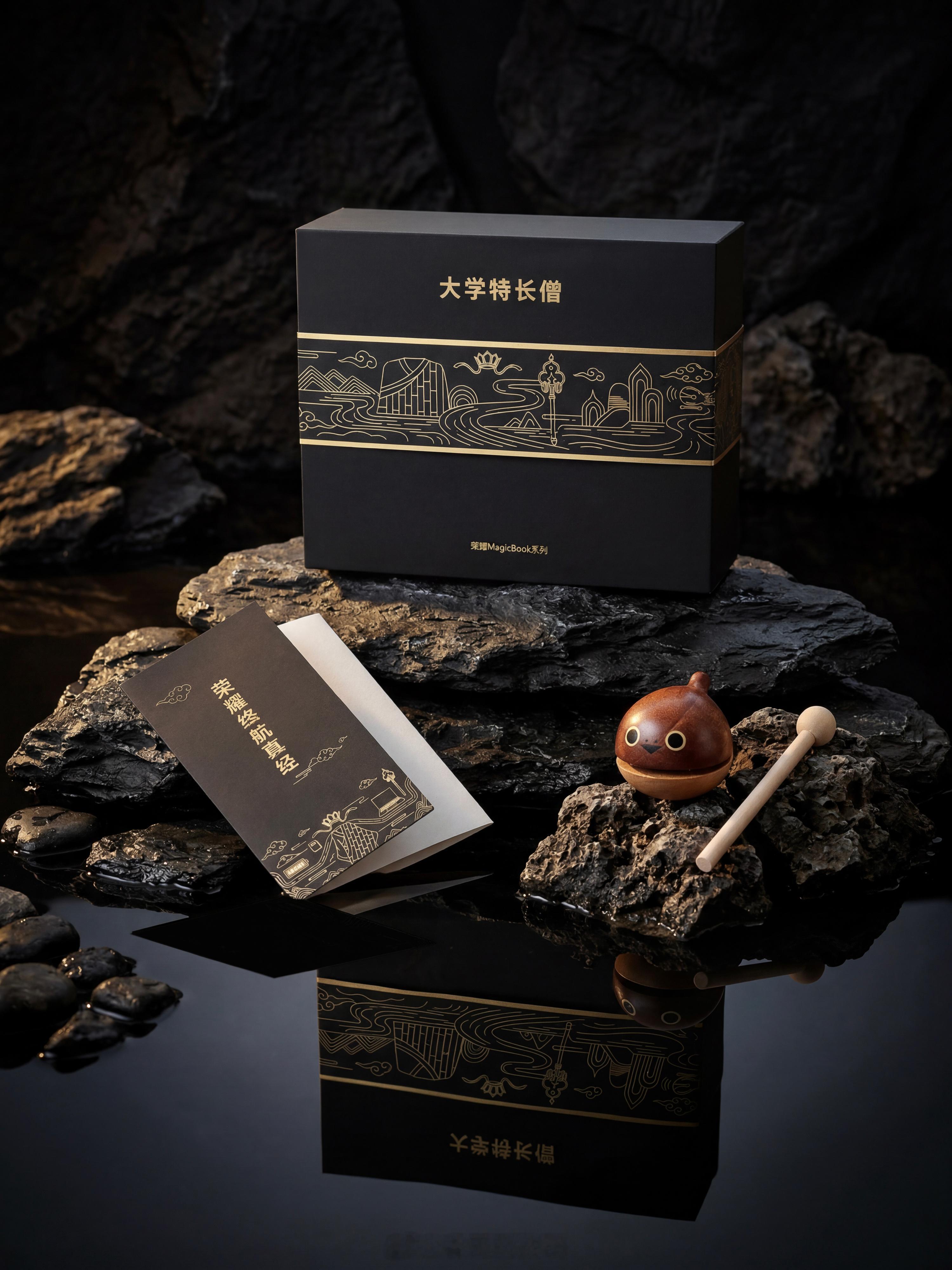 荣耀笔记本【大学特长僧】限定礼盒太会整活了,里面有袈裟、木鱼和续航真经咱就是说玄