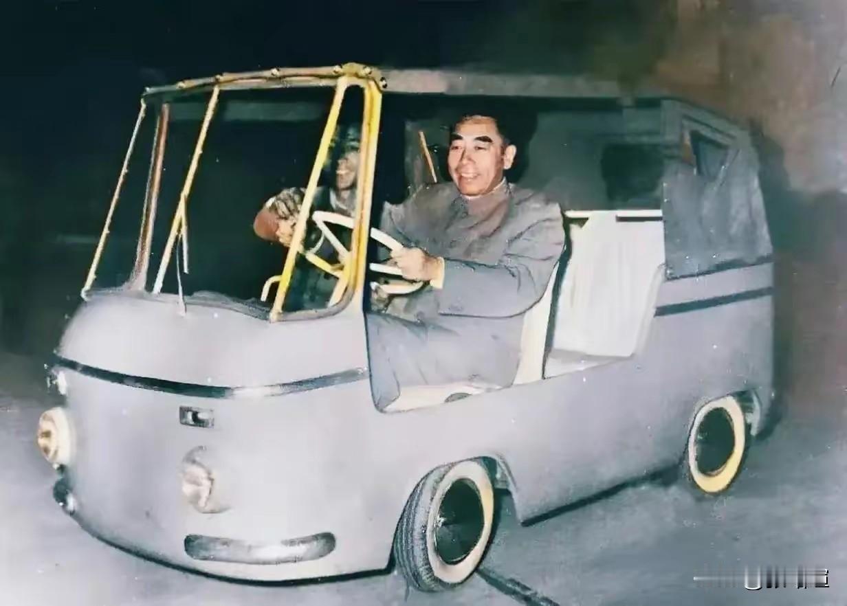 照片很珍贵,我们可爱的周总理,当年亲手试驾的是我国自主研制第一辆微型汽车。