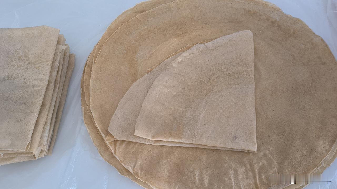 煎饼可以卷上韭菜、芽葱等各类时蔬吃,又可以卷鸡蛋、肉肉类吃,还可以泡在烩菜里吃,是一种方便且吃法多样的美食。