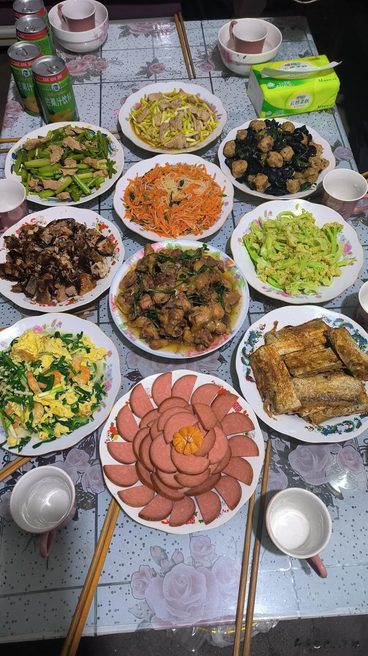 傍晚6点,年夜饭正式开席。一家人围坐在一起,举杯同庆,欢声笑语不断。90岁的婆母坐在主位上,脸上洋溢着幸福的笑容,精神头十足。席间,各位大姑姐家纷纷打来视频电话,给婆母拜年,晚辈们也纷纷来电,送上新年的祝福。一时间,屋里充满了浓浓的亲情和节日的喜庆。