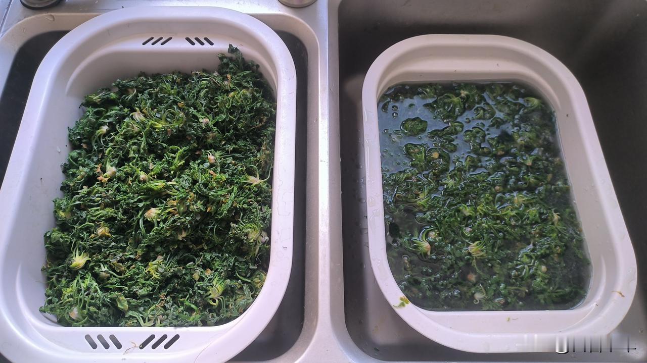 荠菜好挖,但择拣起来颇为费事。我半小时就挖了三小篮,合起来能装一大袋子,然而回家后去根、择黄叶杂草、清洗、焯水、淘洗,所花时间是挖掘的10倍。