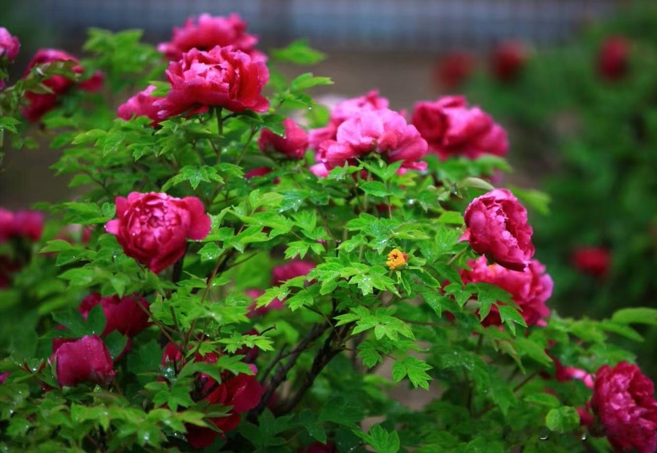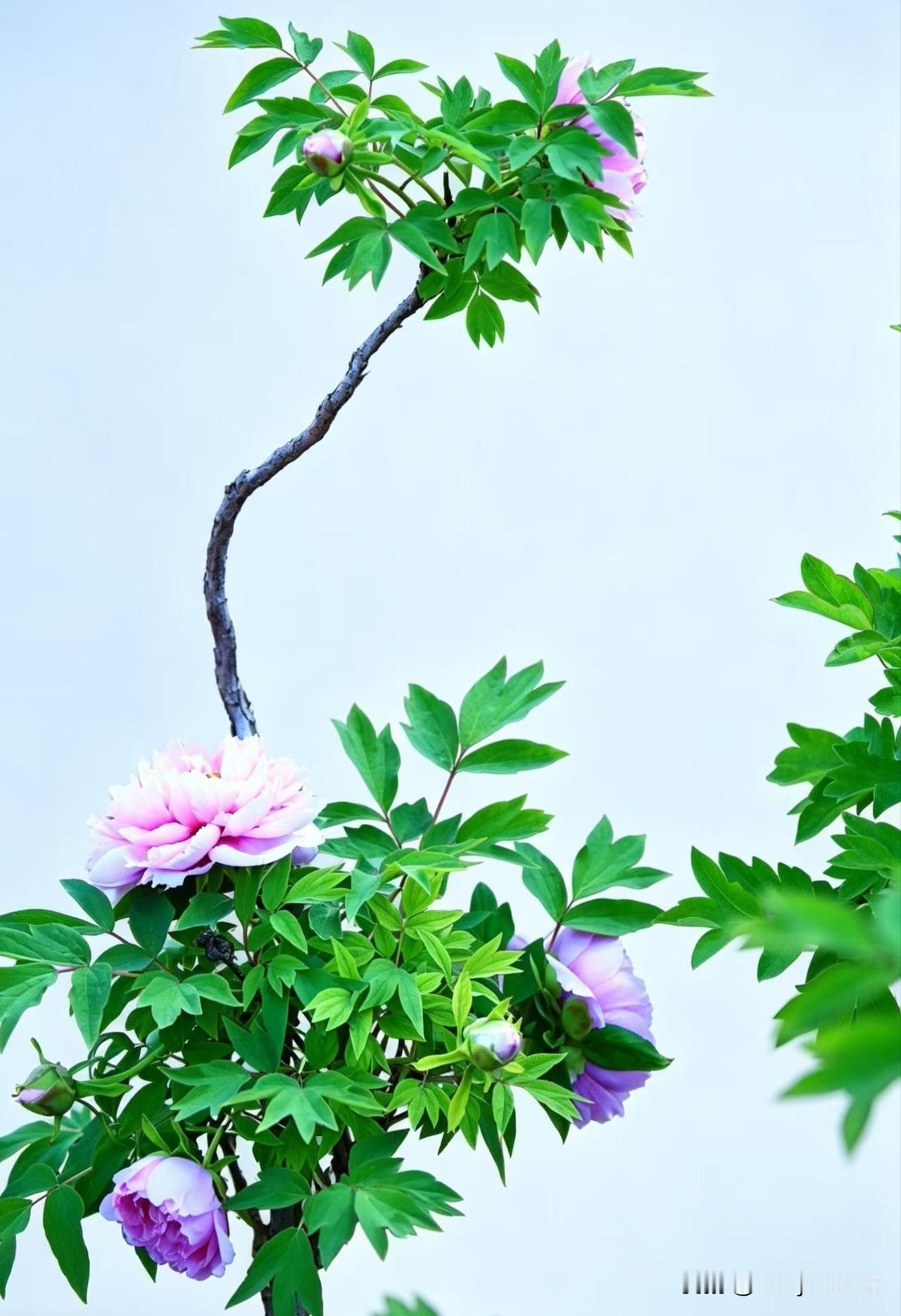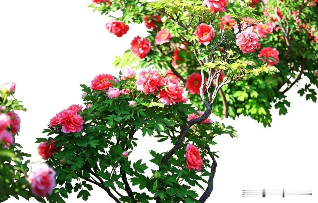 蝶恋花·牡丹 粉艳深红枝上闹,雨润新妆,柔蔓依风袅。不借春光争媚好,清姿自把芳华
