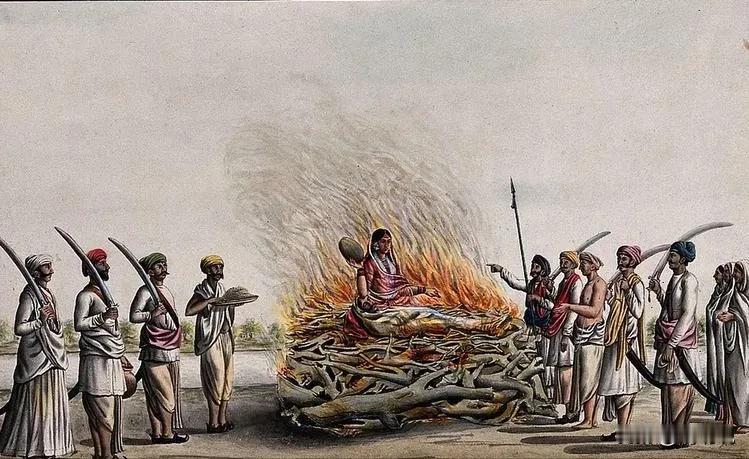 1817年,当英国的统治力量在印度蔓延开来时,他们发现当地有一个陋俗。一些印度有钱男人死后,他们的妻子会被强制要求殉葬。