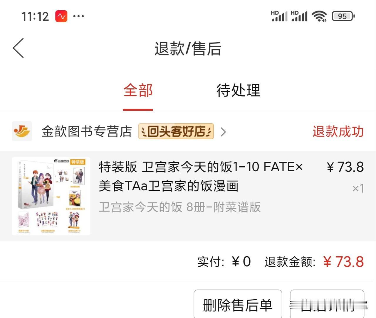 年前,孩子在拼多多花73元买本溢价的《卫宫家的饭》特装版书籍,节后,商家发货了,