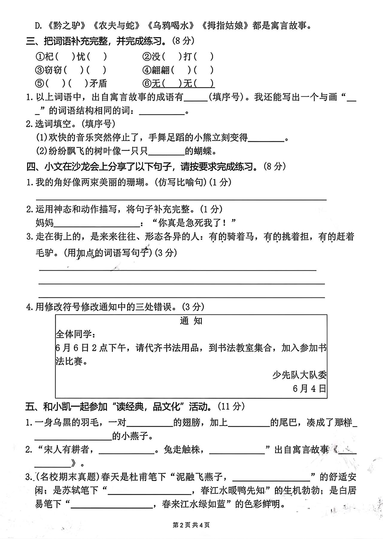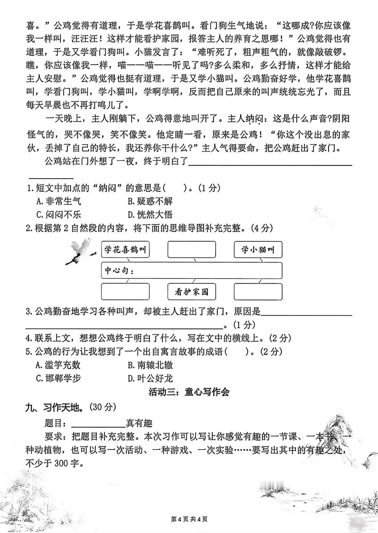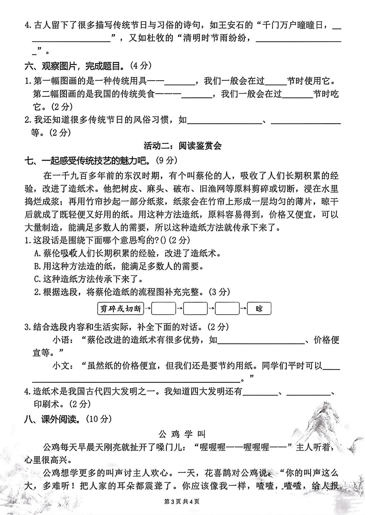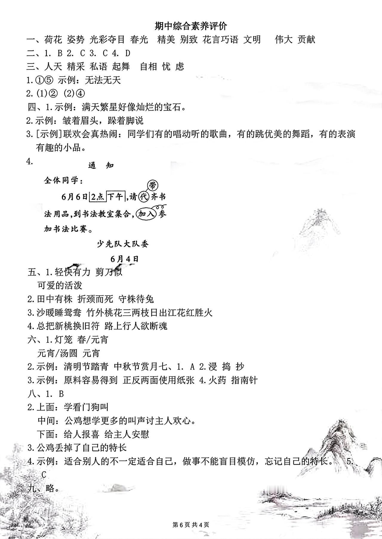 26春三年级下册语文,期中综合素养评价卷及参考答案,收藏备用