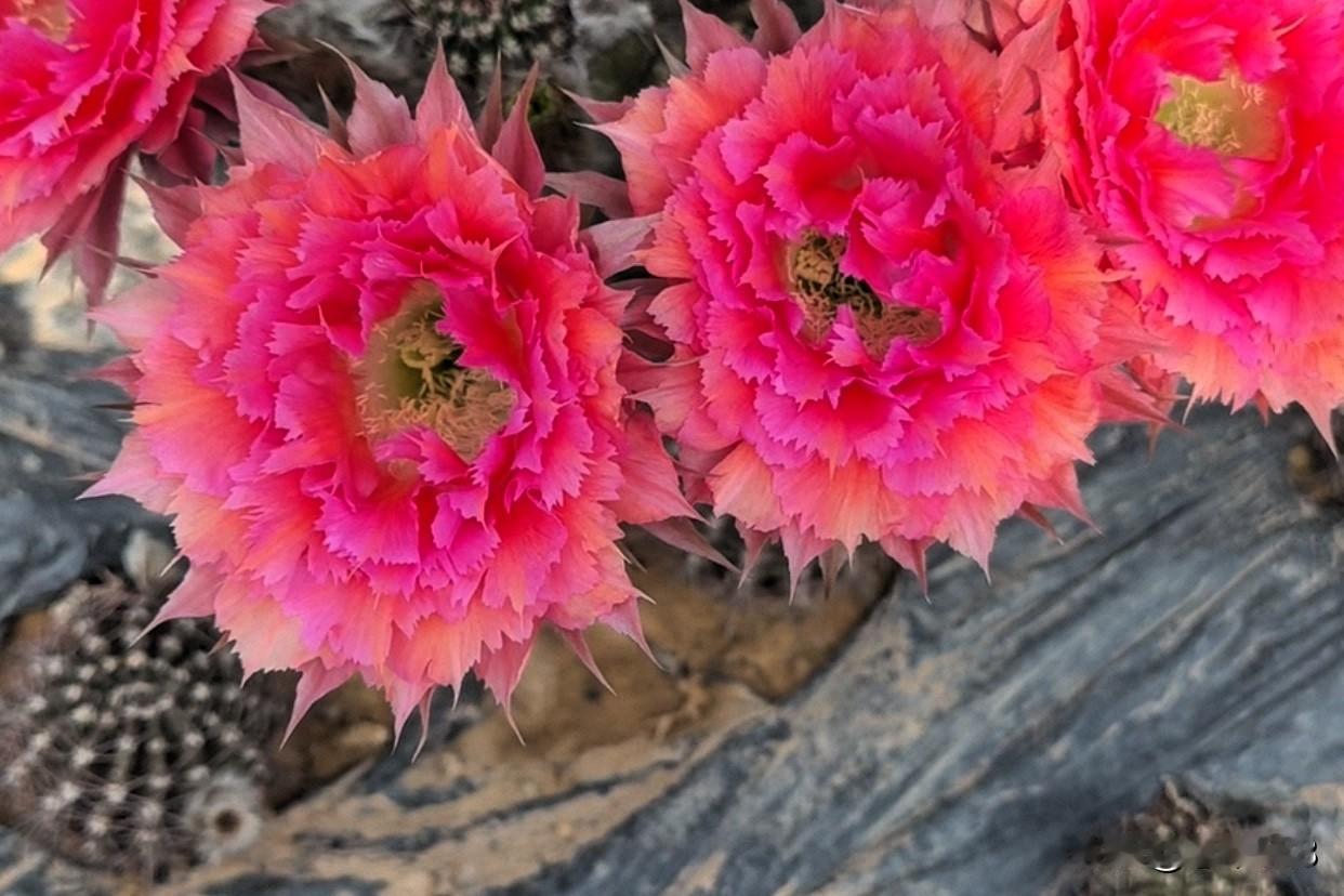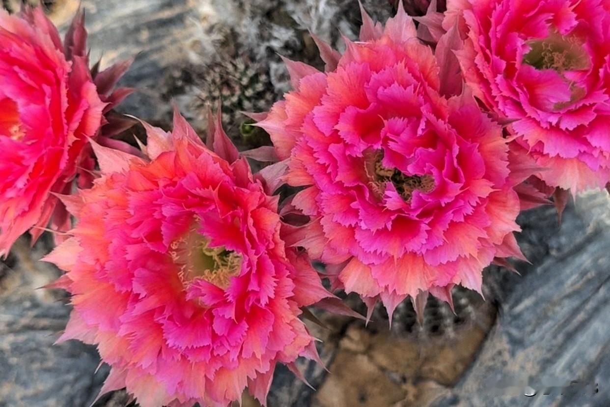 仙人球也会开花,友友们相信吗?今天的花𣁽是凤羽6号,最丑萌的仙人球,开出了超级好看的花朵,凤羽系列仙人球开花真的漂亮,花开如牡丹,国色天香,古典高雅,花色丰富,色彩斑斓。