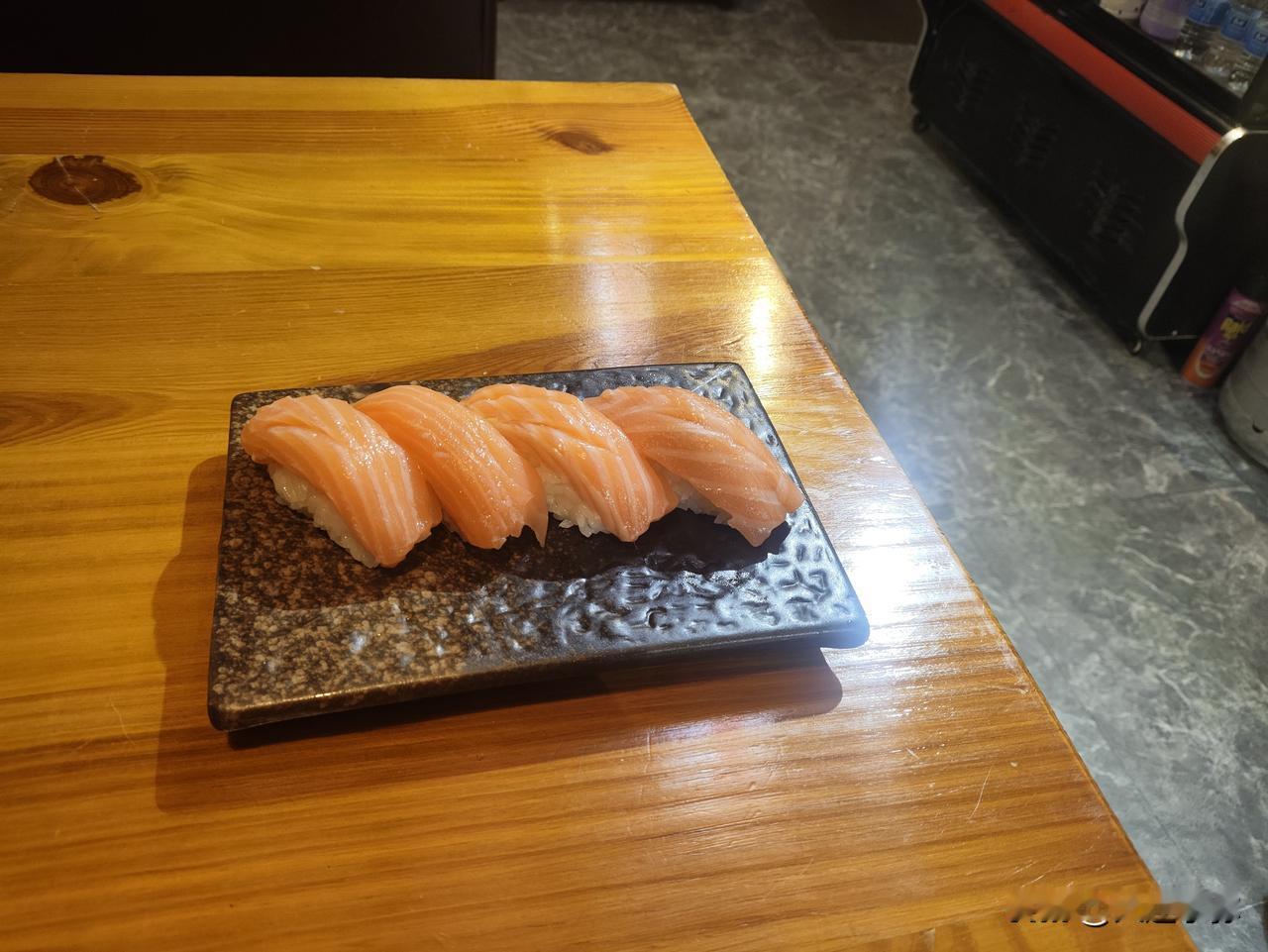 先奔英华街小巷里的精致日料小店,领了四个手握三文鱼寿司,鱼肉鲜甜,蘸酱绝配。
