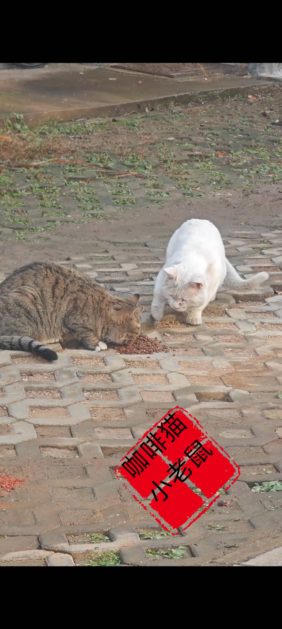 这只白色的流浪猫由于肤色的原因,经常受到同类的欺负,不仅群居的时候不被待见,甚至连觅食的时候都会受到同类的猫咪打压和谩骂!