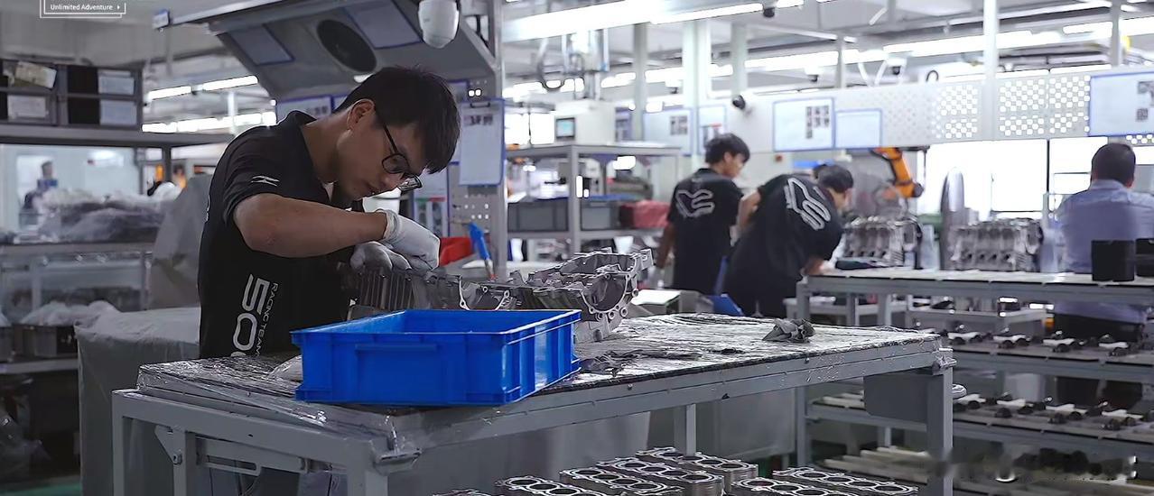张雪机车老板张雪指着发动机流水线上的员工,自豪地说:我们的人员特别年轻,不太像传统打螺丝生产线该有的面貌,为什么?因为我们生产线人员的工资比周边的工资高30%,当我的工资设定得高的时候,我就有无限的选人的权限。