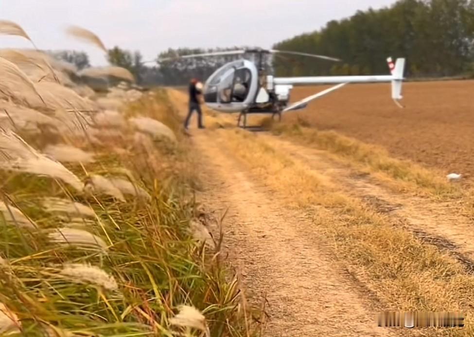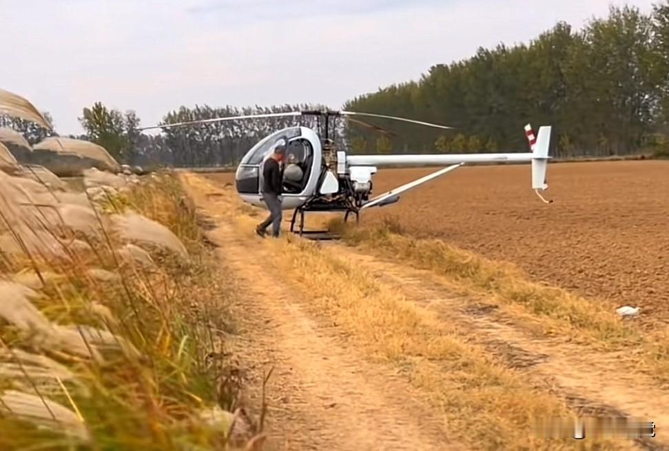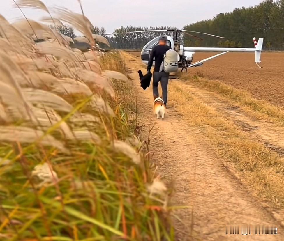 在田边的泥路上,一个人包着背包,带着一条狗,开着飞机上班去了,张雪机车老板张雪的越野摩托师傅自己造的小直升飞机可真方便,随处可起飞,随处可降落,就是不知道有没有牌照?在这荒郊野岭,应该也没人管,想罚他款也追不上。