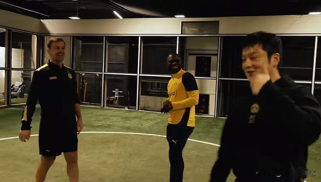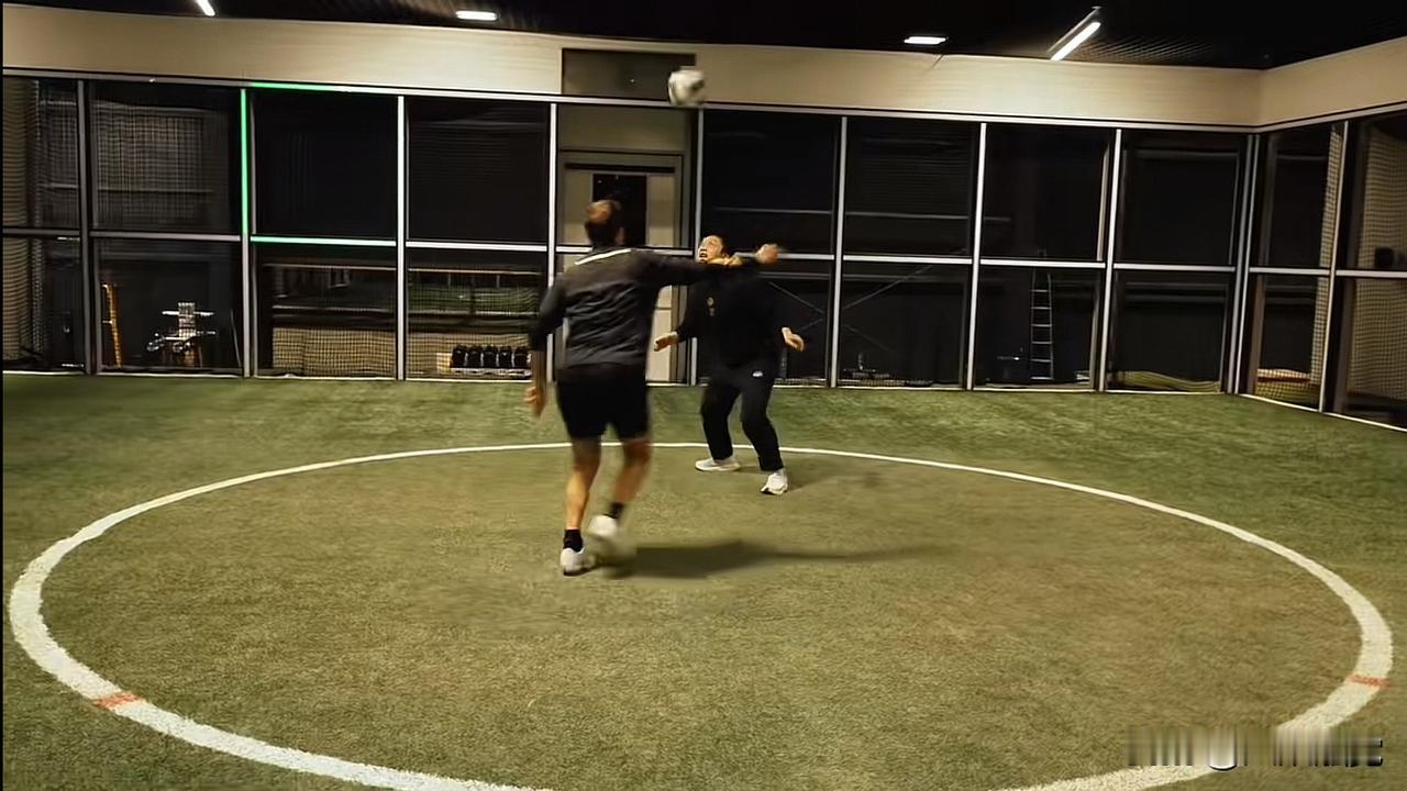 樊振东到多特蒙德俱乐部训练场和球员踢足球,只见他高空停球,凌空抽射,头球过人,动