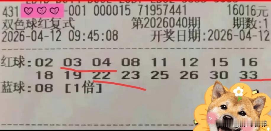 今晚这开奖号码真奇葩,没有一个拐弯的,都是简单粗暴。不过,形态是是很奇葩的,03 04和22 23两组连号,04 14同尾,03 23 33同尾,04又是红蓝同体。